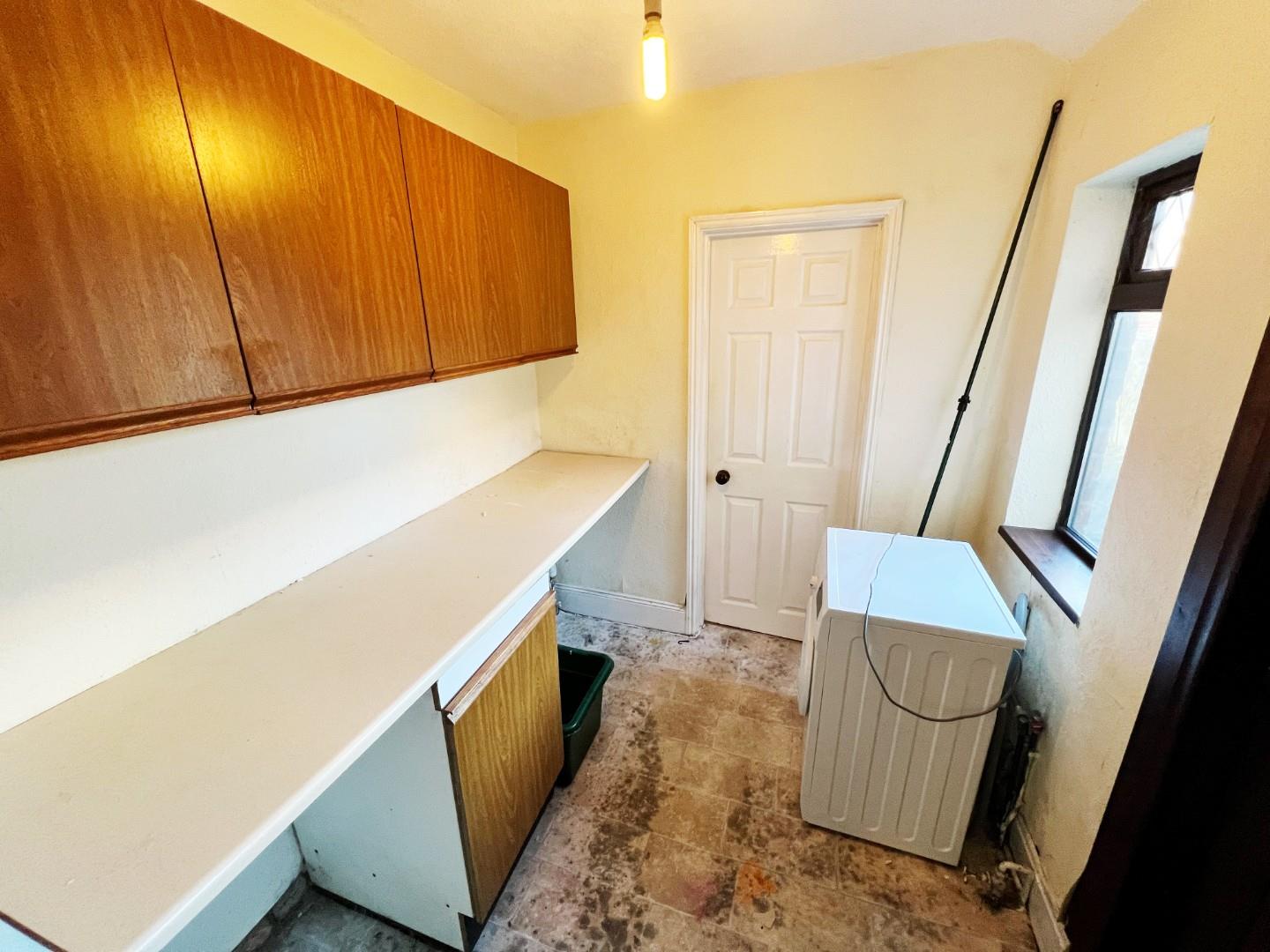 Wall and base units, plumbed for washing machine, uPVC window, radiator.