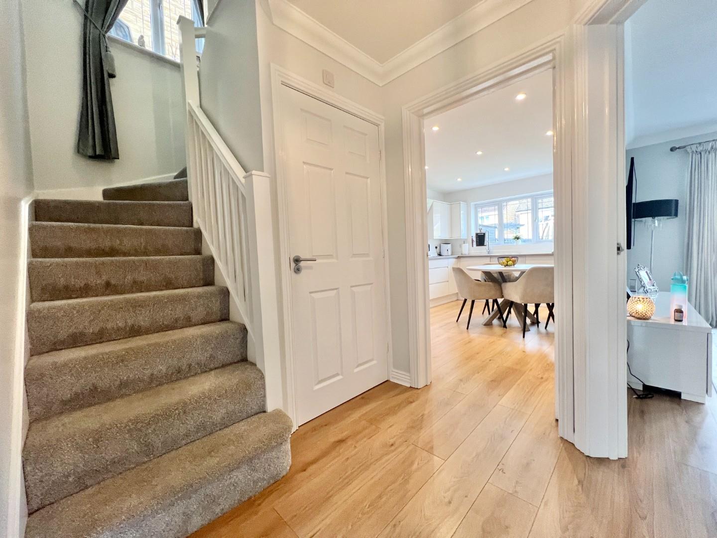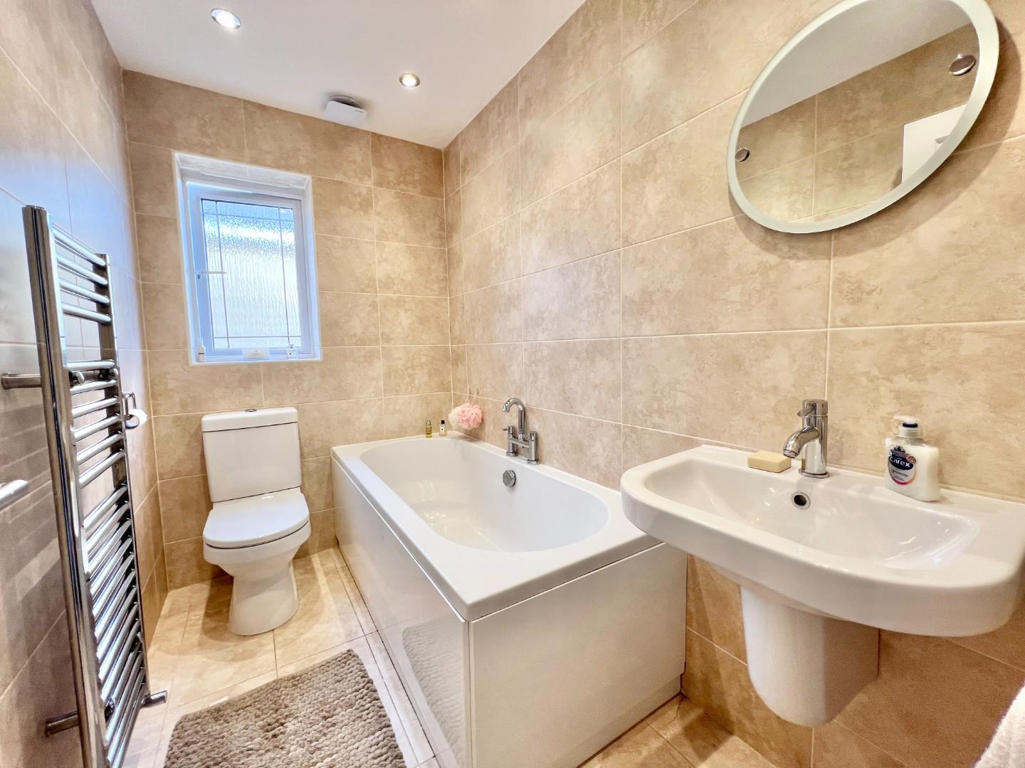 This beautifully presented four bedroom detached house has undergone a programme of refurbishment over recent years and has been finished to a modern standard. The house has a very attractive re-fitted kitchen with space for dining table, contemporary decoration throughout, UPVC double glazed windows and gas combination boiler.