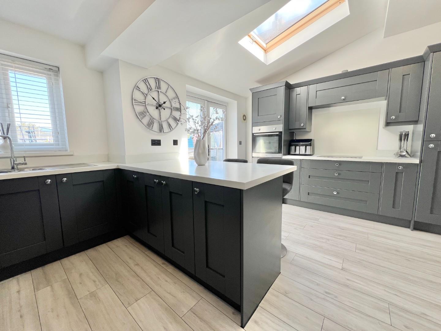 The internal accommodation comprises; entrance hallway, lounge with bay window to front aspect and double doors opening to the dining room which is a generous size room and is currently being used as a second lounge. Impressive kitchen/breakfast room which is fitted with a modern range of wall, base and drawer units with integrated appliances and breakfast bar, French doors to the rear yard. A cloakroom/WC concludes the ground floor accommodation.