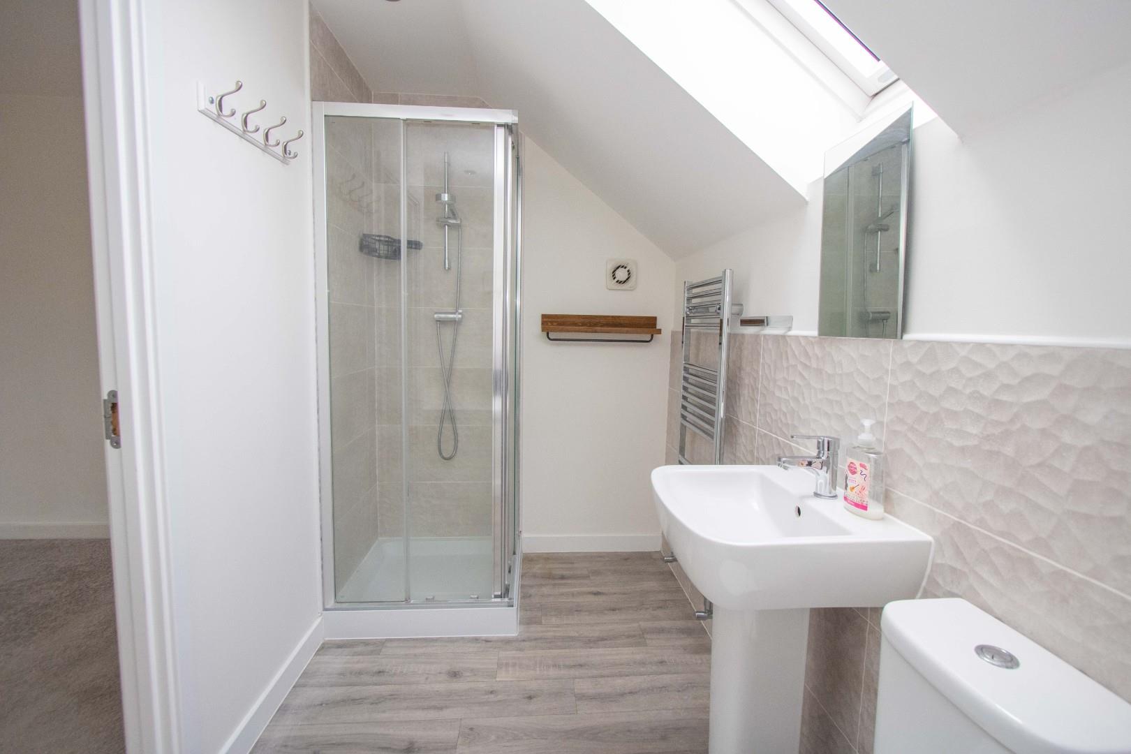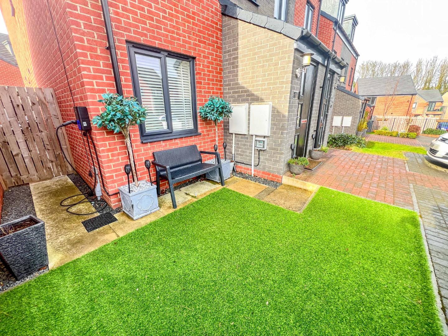This exceptional modern family home offers ample outdoor space, including an open-plan garden and double driveway to the front. The rear is enclosed with patio and summer house.