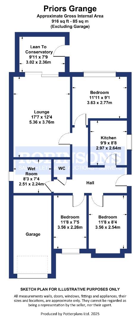 The floor plan features a thoughtfully designed layout that includes: an inviting entrance hallway, a versatile double bedroom that can alternatively serve as an additional reception room, a modern fitted kitchen, a single bedroom, a convenient wet room with WC, a separate WC, and a comfortable lounge area with patio doors opening to a lean-to conservatory. Additionally, there is a second spacious double bedroom, providing ample accommodation options.