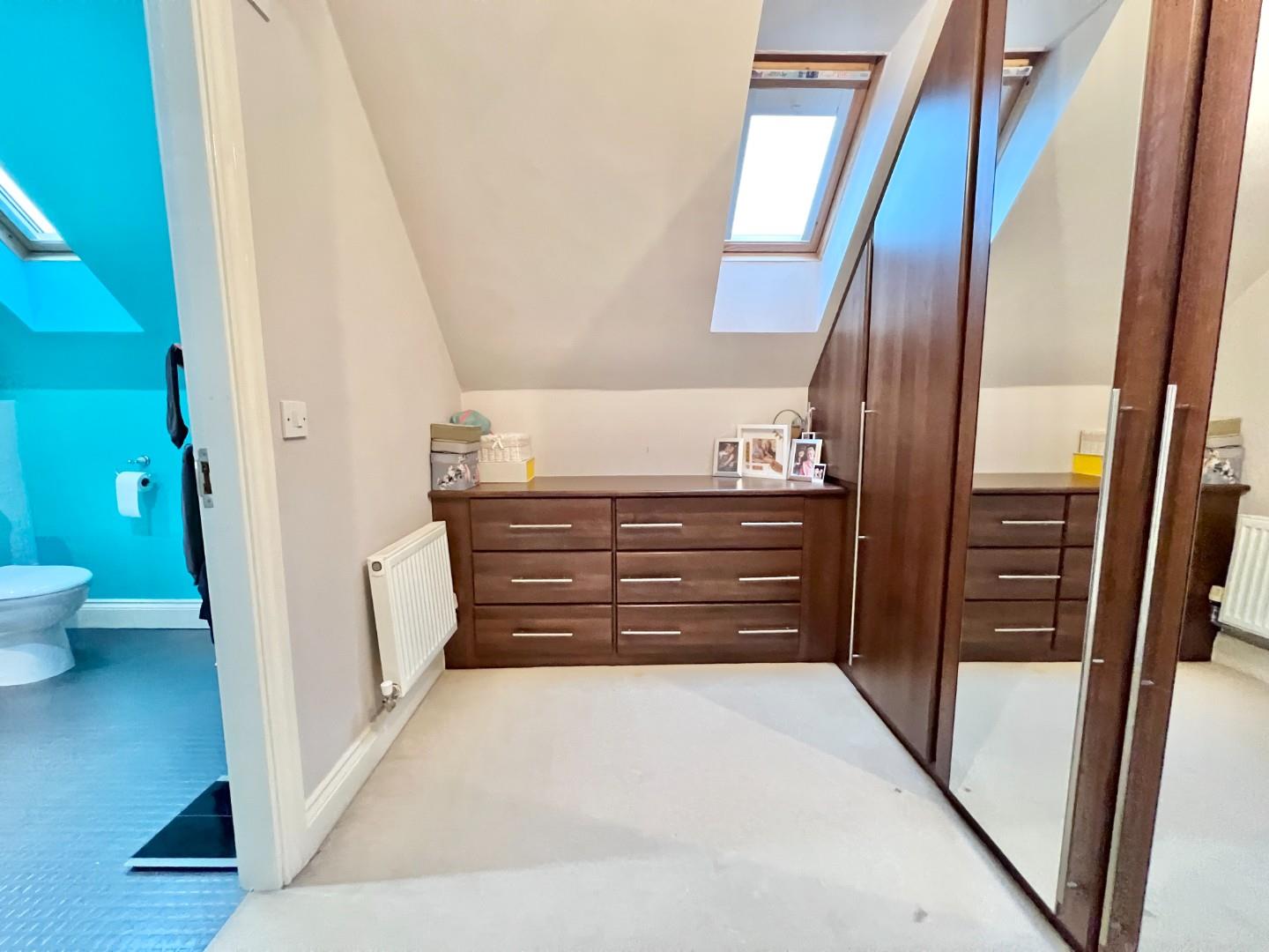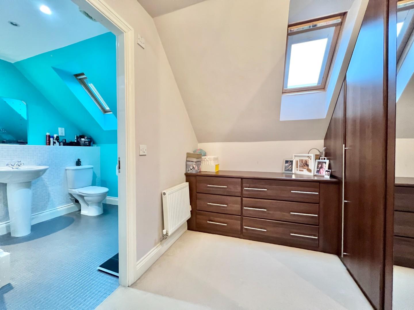 To the first floor there are three bedrooms and a family bathroom while to the second floor there is a further double bedroom with dressing area with fitted wardrobes and an en-suite shower room.