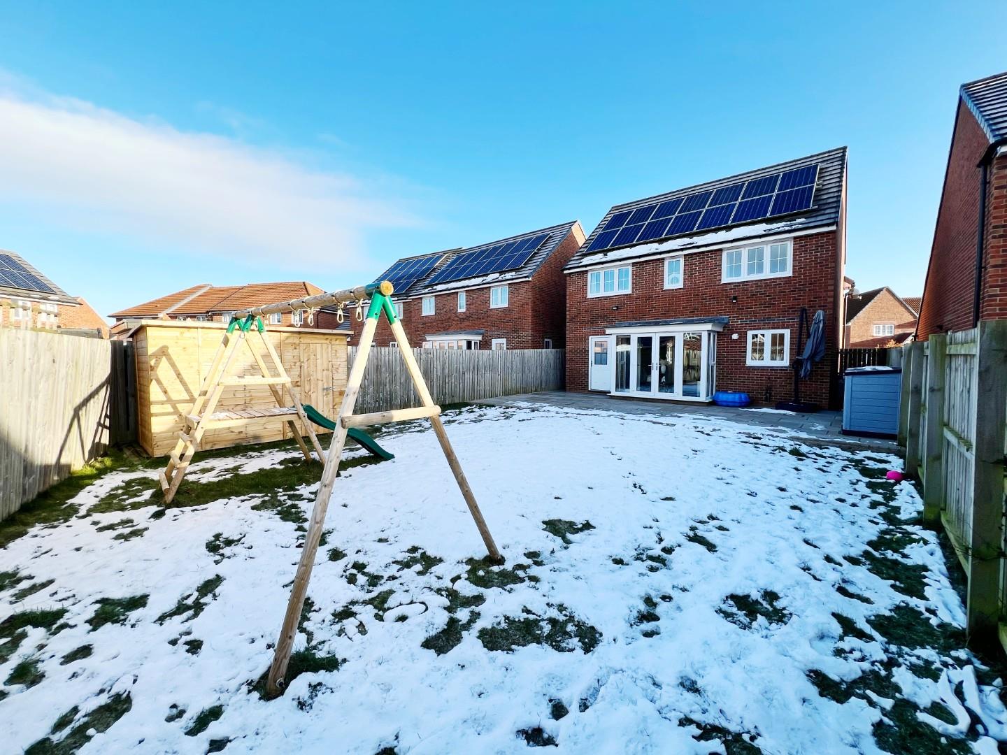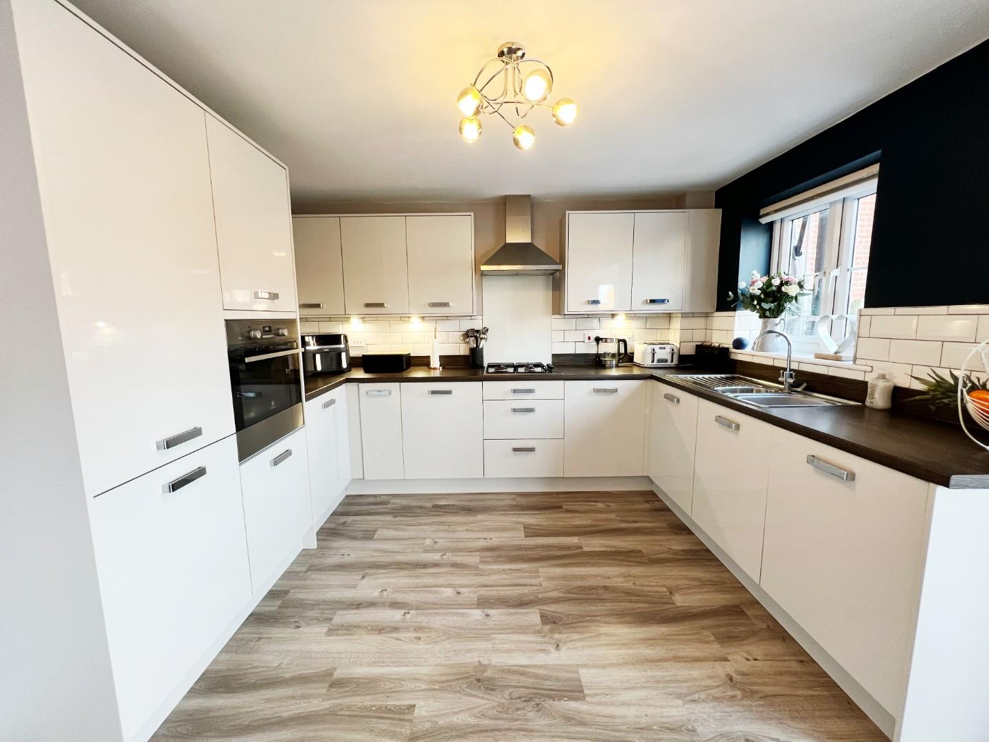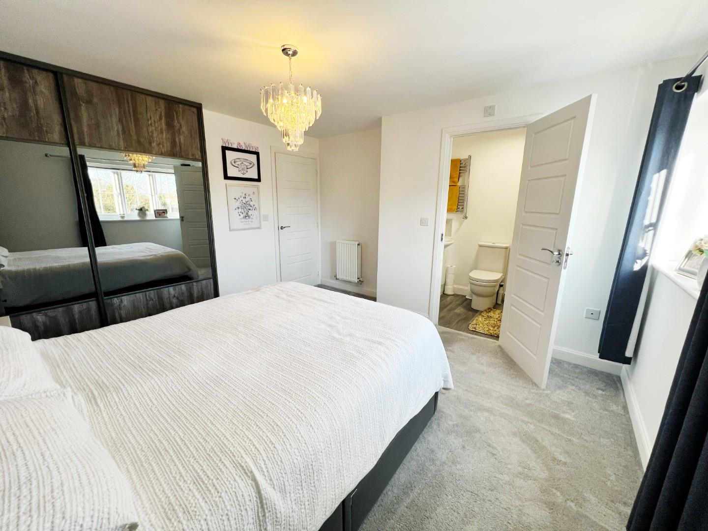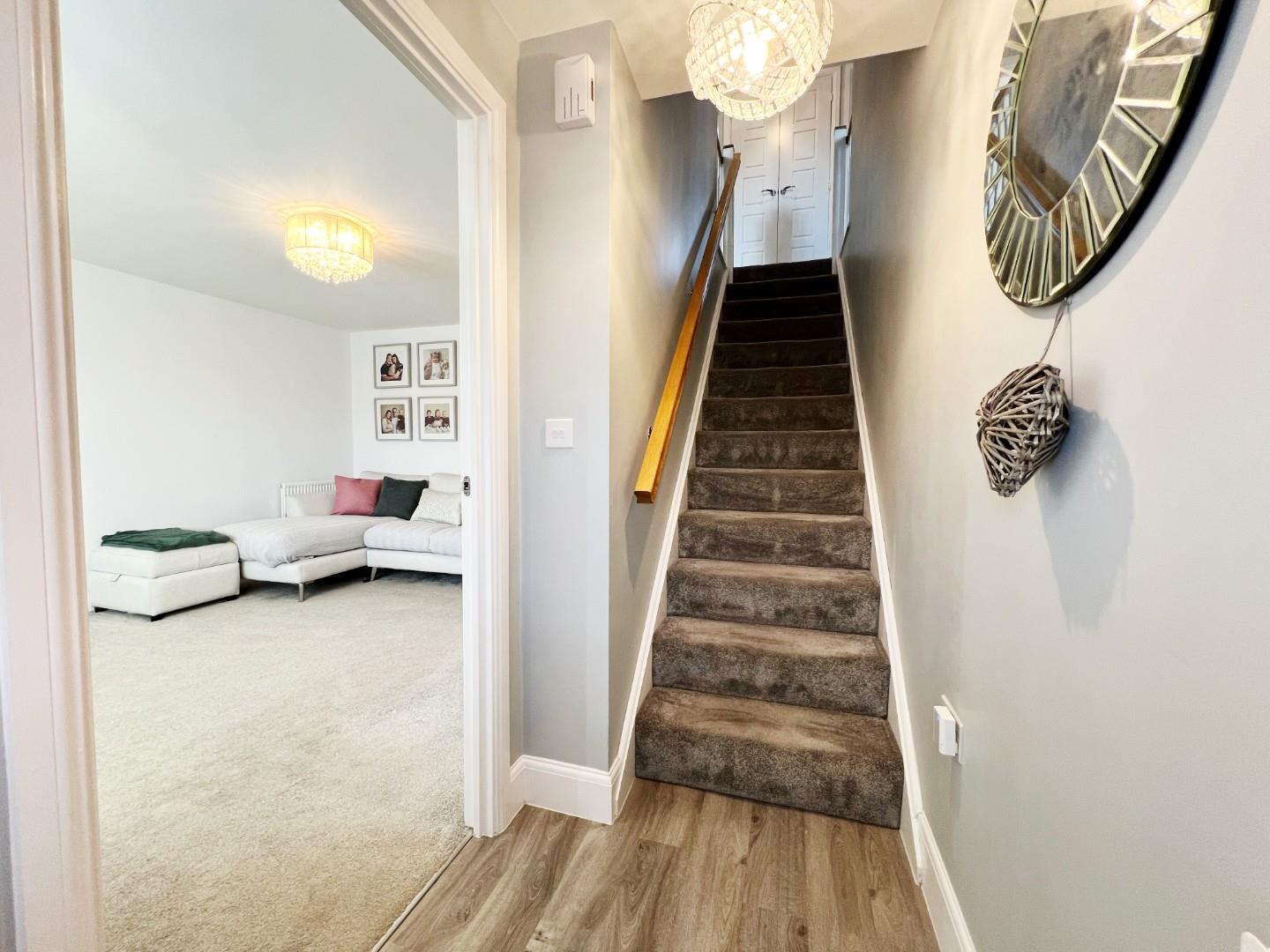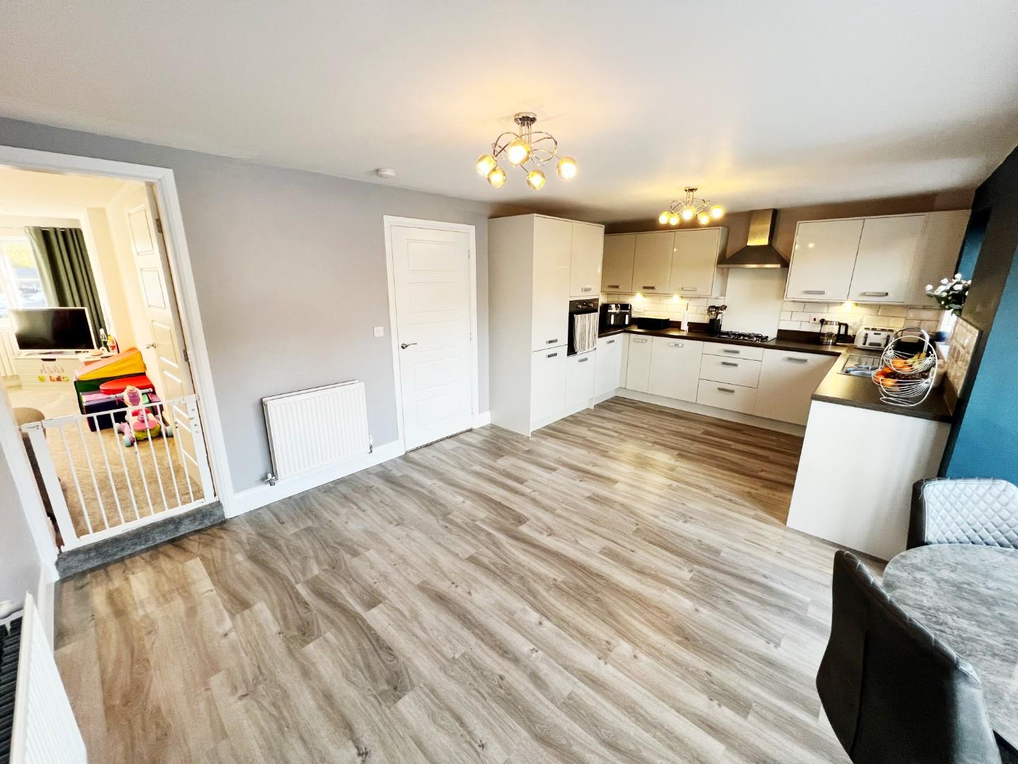 This inviting property briefly comprises: entrance hallway, stairs to the first floor, spacious lounge with bay window to front elevation, a beautiful kitchen / dining area flooded with natural light & boasting a range of modern wall & base units with access to the enclosed rear garden, utility room and a cleverly converted playroom. The first floor landing gives access to the bedrooms (the master bedroom having its own en-suite shower room) & a family bathroom with three piece suite. The first floor also gives access to a loft which has recently been boarded. Externally, this well proportioned dwelling enjoys a good sized, enclosed, South-West facing garden to the rear which is largely laid to lawn, whilst to the front there is a easy to maintain garden & ample driveway parking. The property also includes solar panels. We highly encourage thorough internal inspection in order to fully appreciate the style, standard, quality, layout & size of this impressive home for sale.