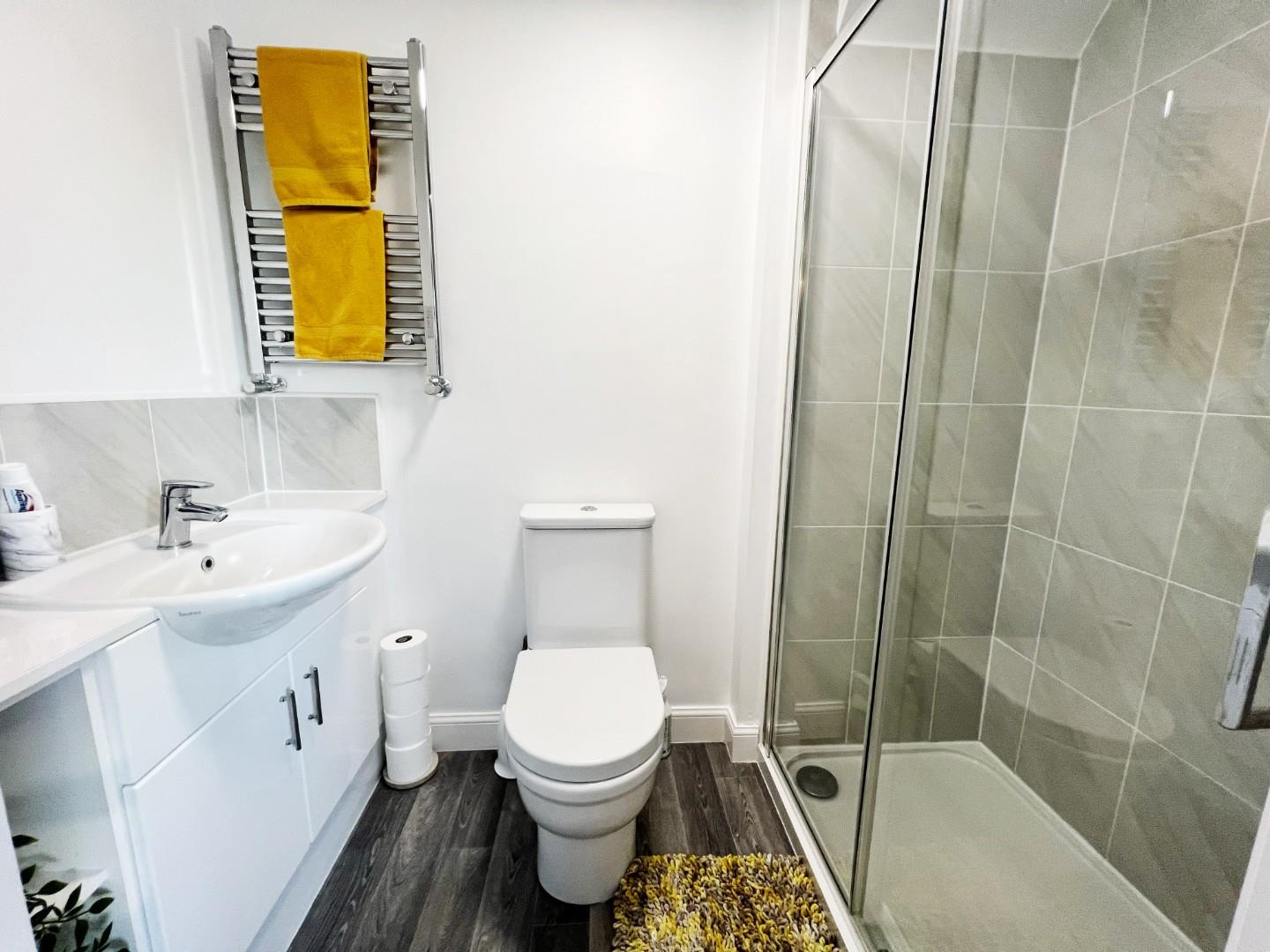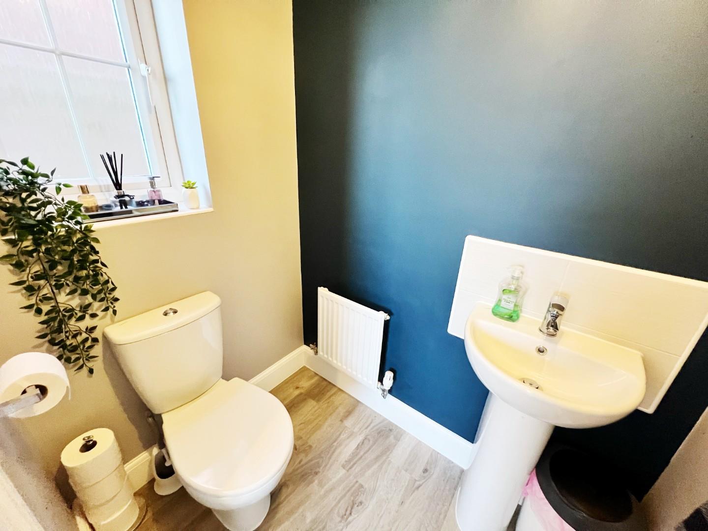 W/C, wash hand basin, tiled splashbacks, uPVC window, stylish flooring.