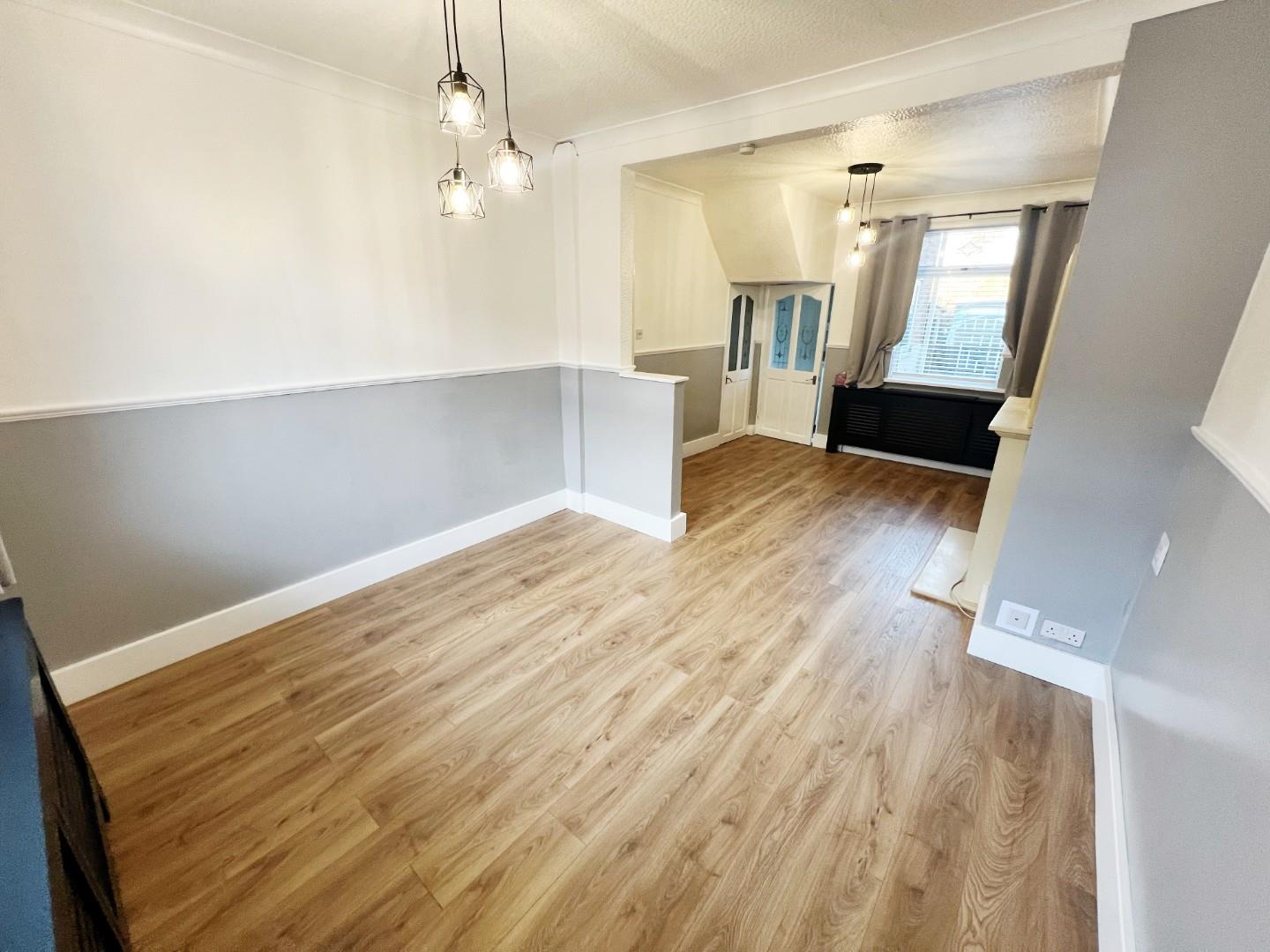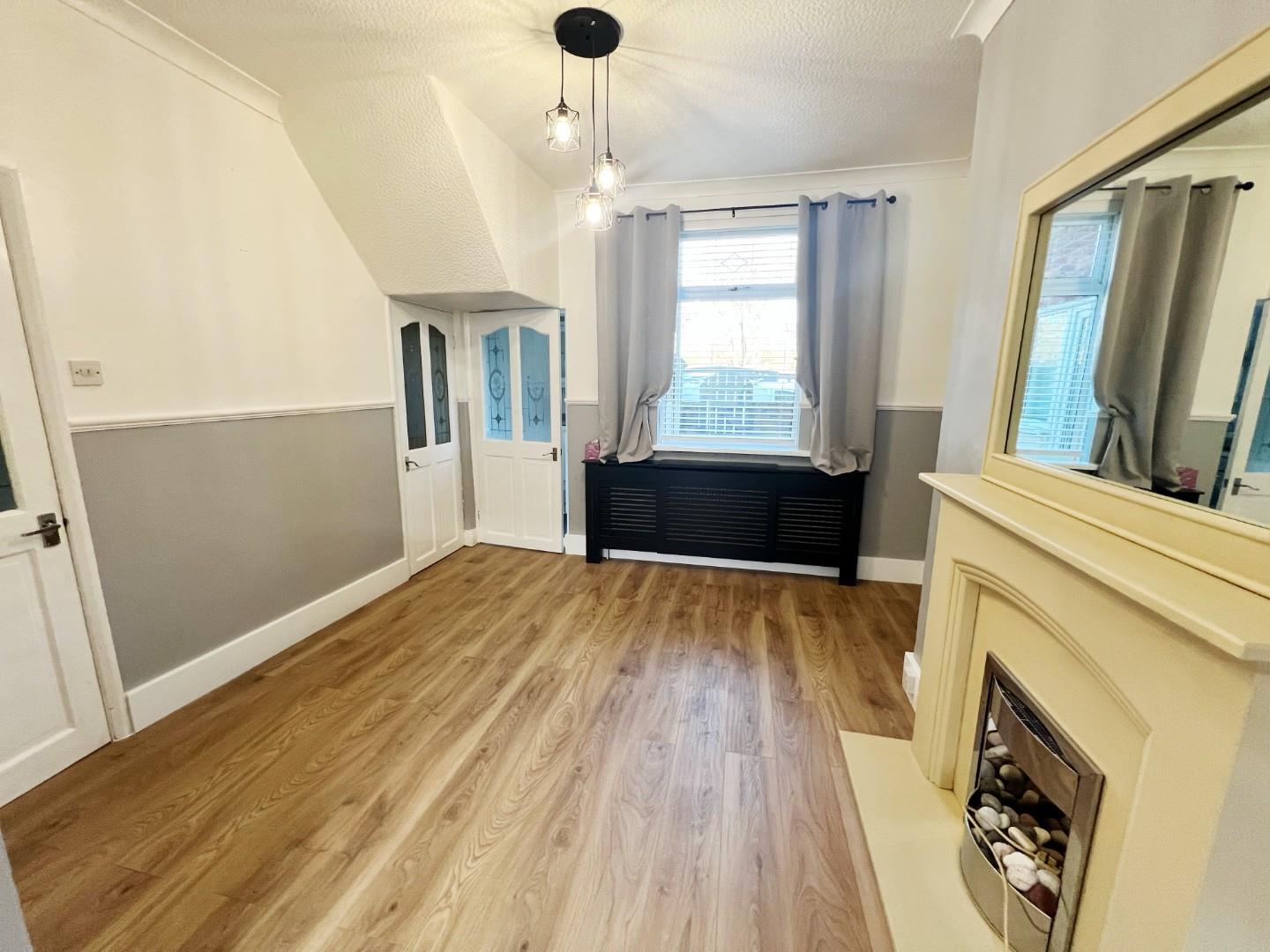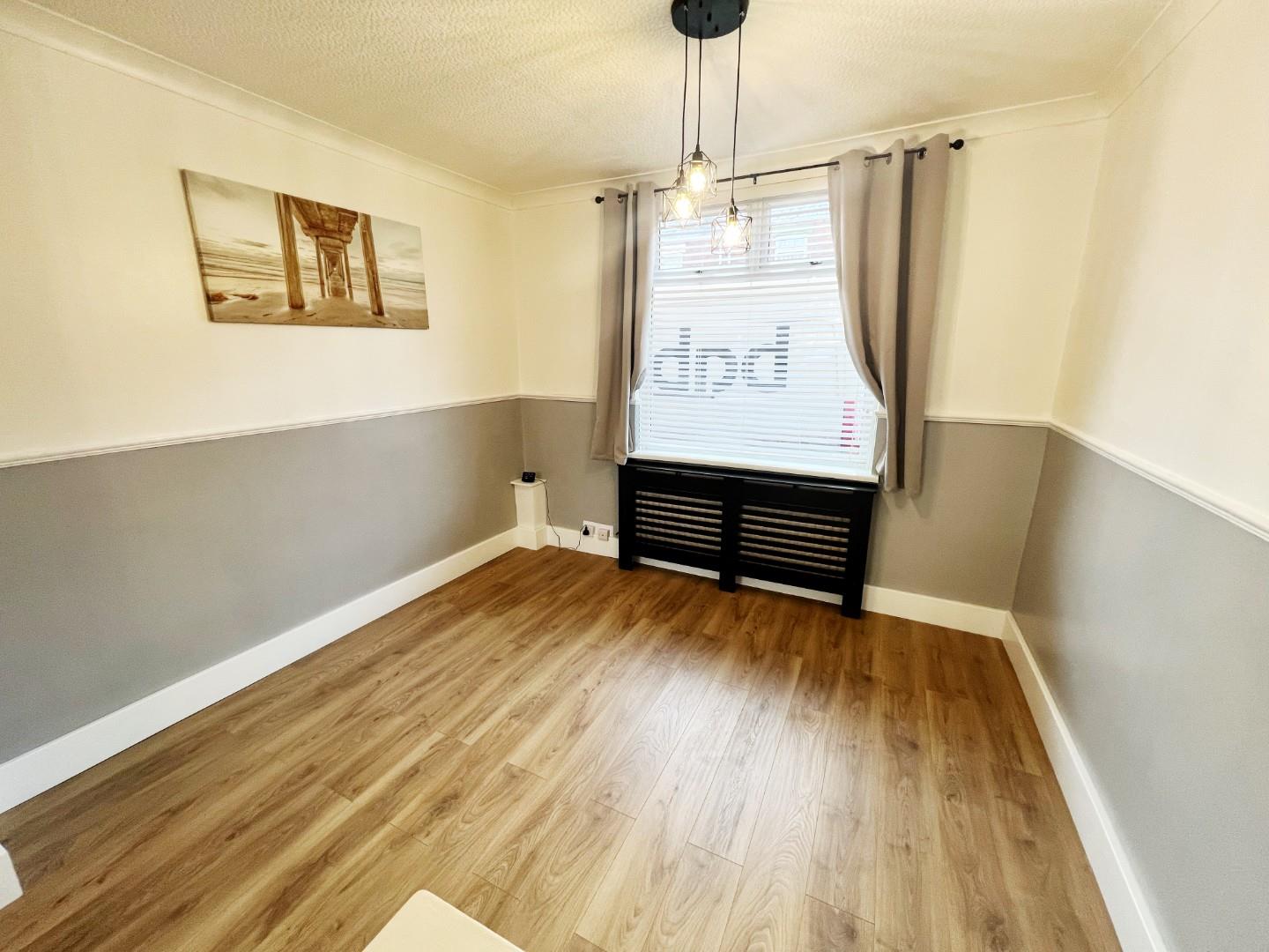 Wood effect flooring, radiator, uPVC window.