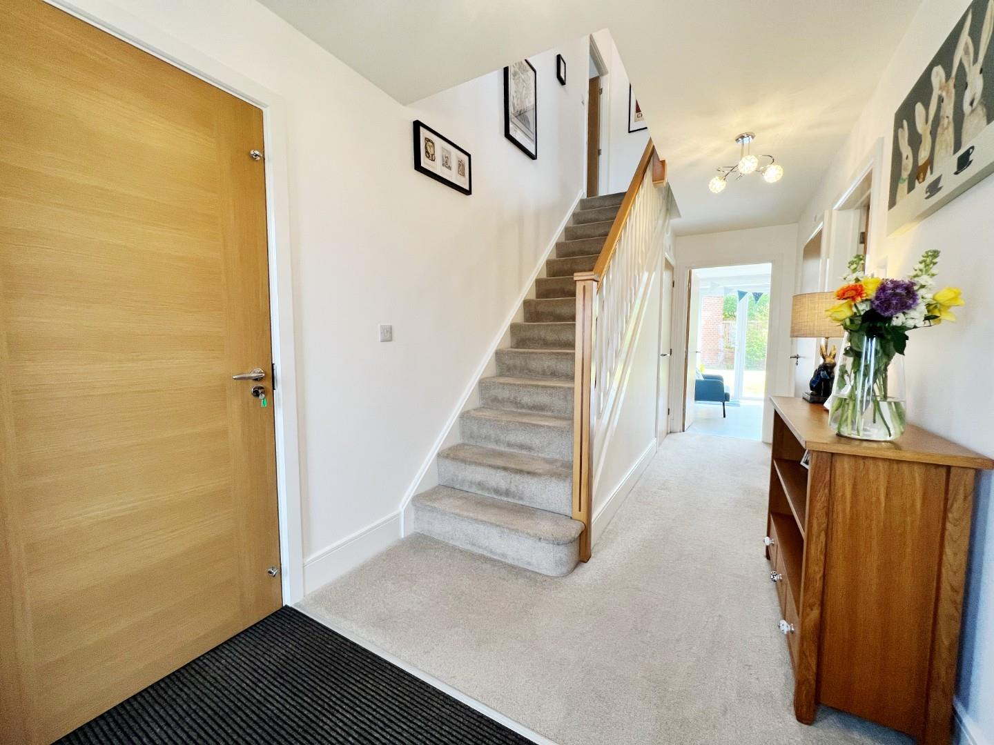 Radiator, stairs to the first floor, access to the garage, utility cupboard with plumbing for a washing machine.