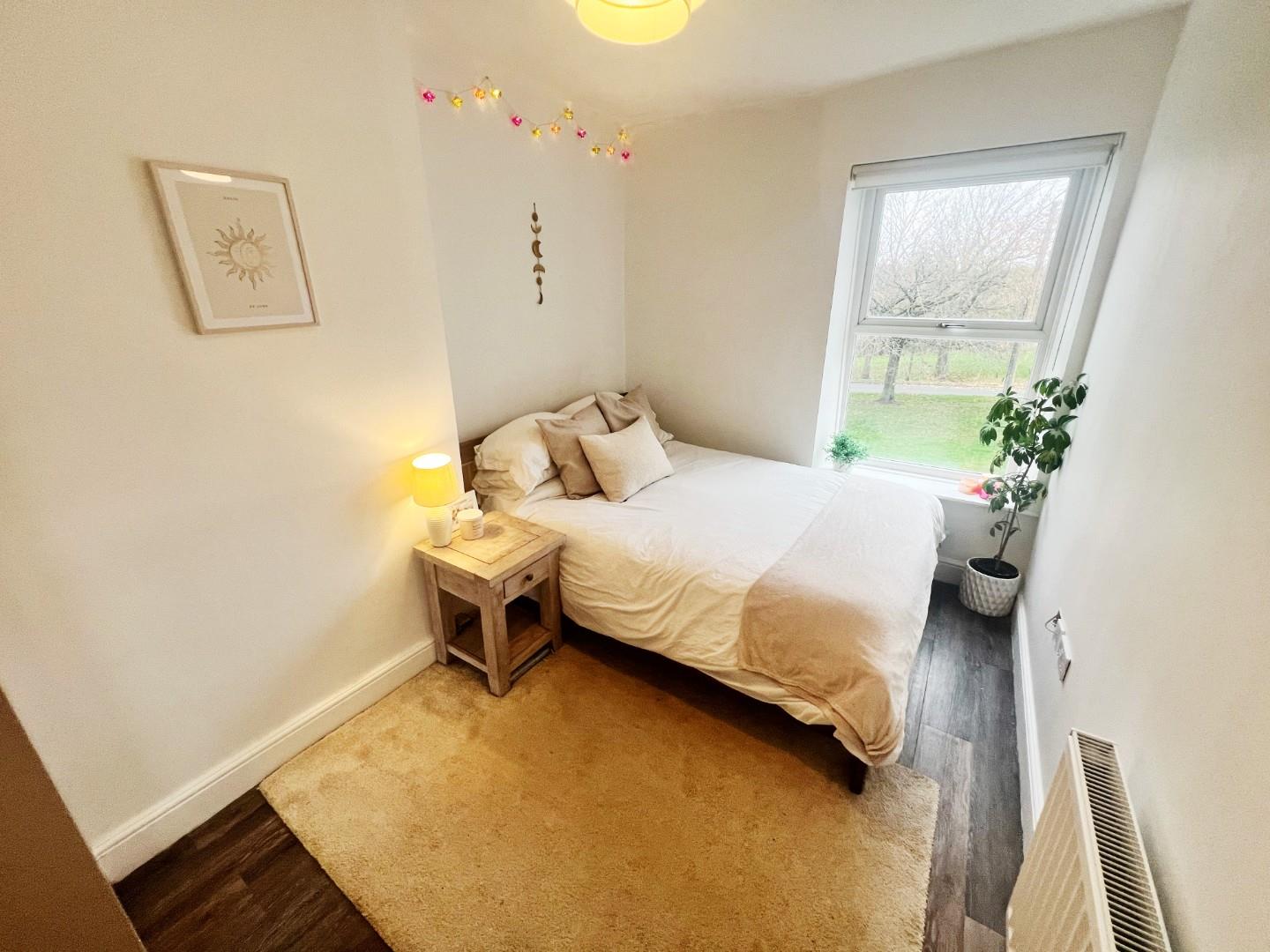 UPVC window, radiator, quality flooring, fitted wardrobes, lovely outlook.