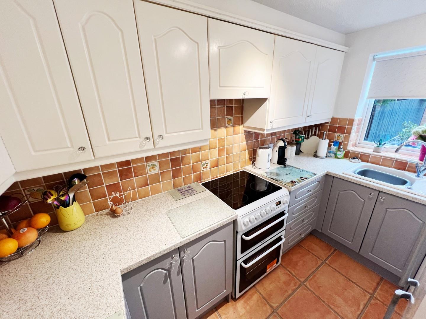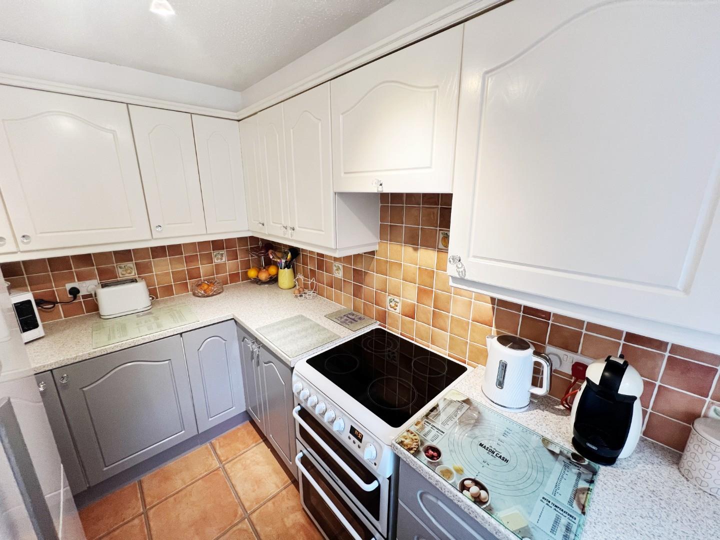 Wall and base units, ceramic sink with mixer tap and drainer, electric cooker point, plumbed for washing machine, space for fridge freezer, tiled flooring and splashbacks, uPVC window, extractor fan.