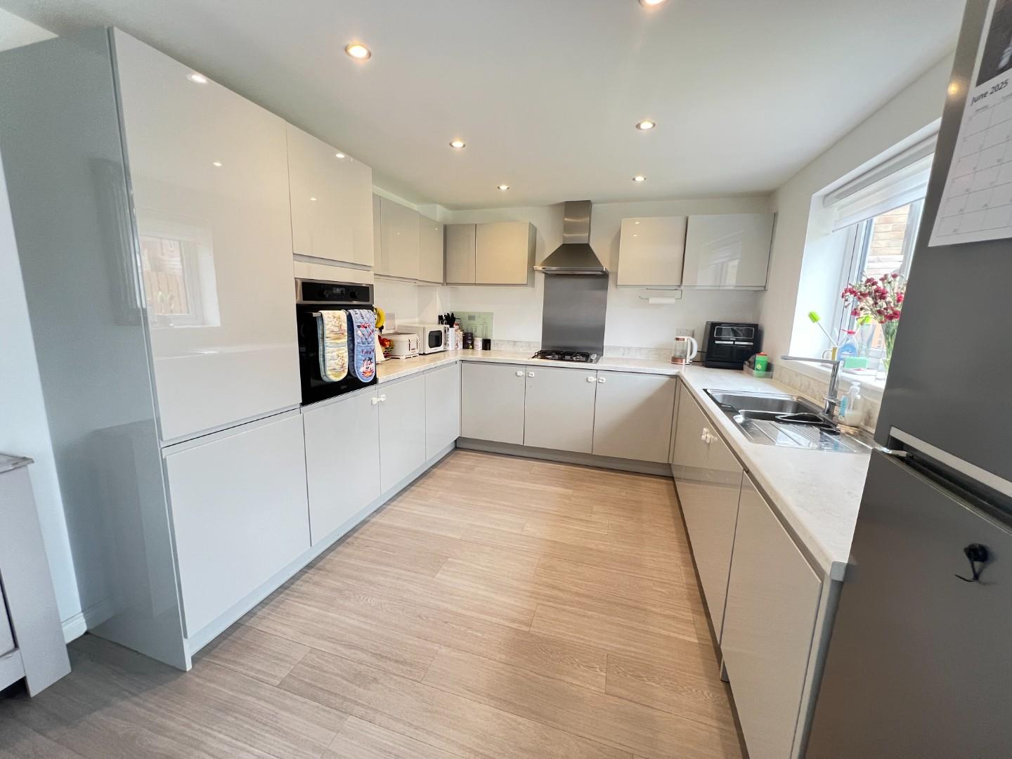 Upstairs, the master suite and bedroom two both serve as a sirene retreat, complete with fitted wardrobes and a modern en-suite bathrooms. Two additional double bedrooms and a stylish family bathroom ensure ample accommodation for family and guests alike.