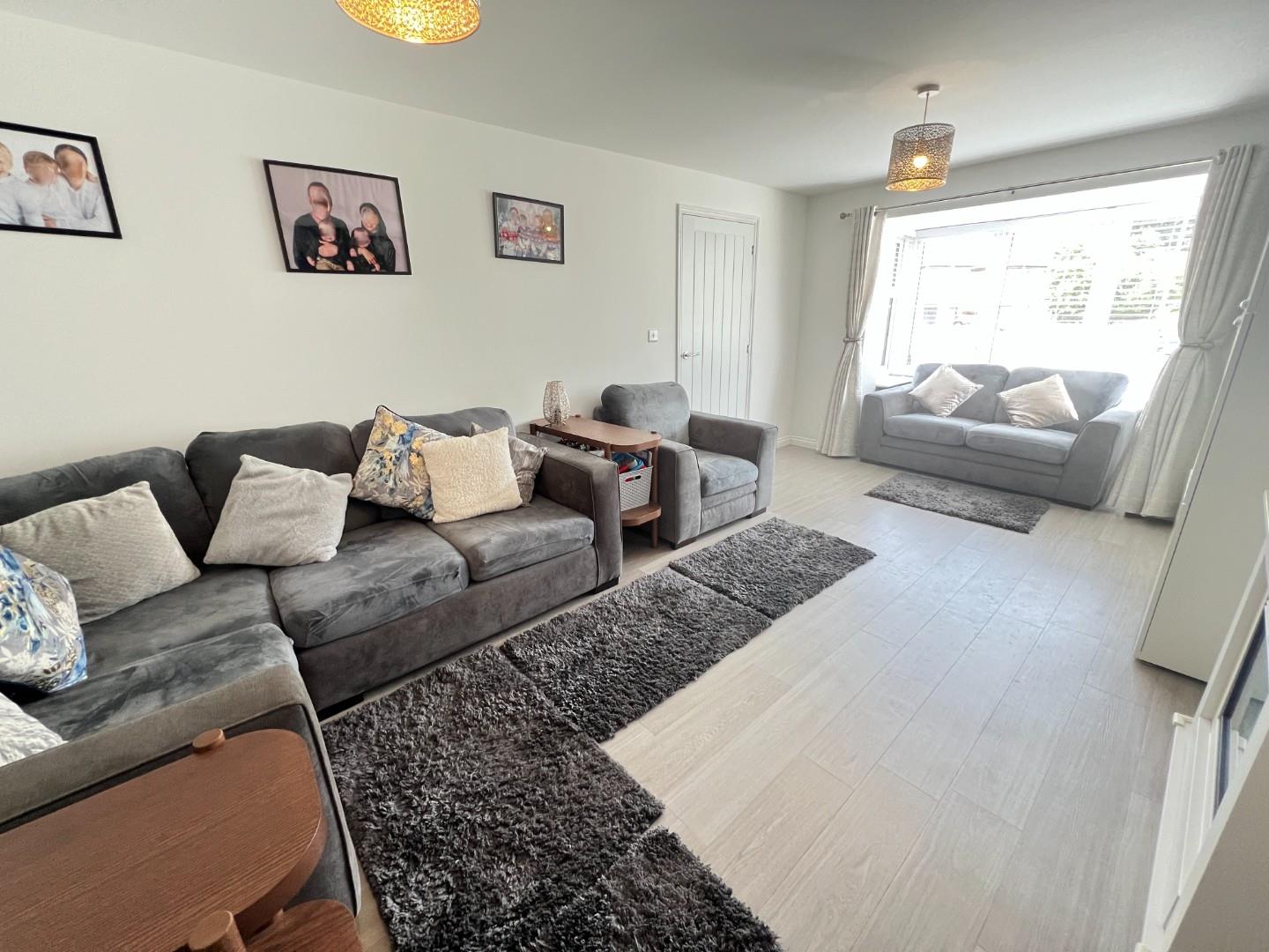 Upon entering, you are greeted by a welcoming hallway leading you into generous and stylish living spaces. The bright lounge, adorned with a charming bay window, provides a perfect setting for relaxation.