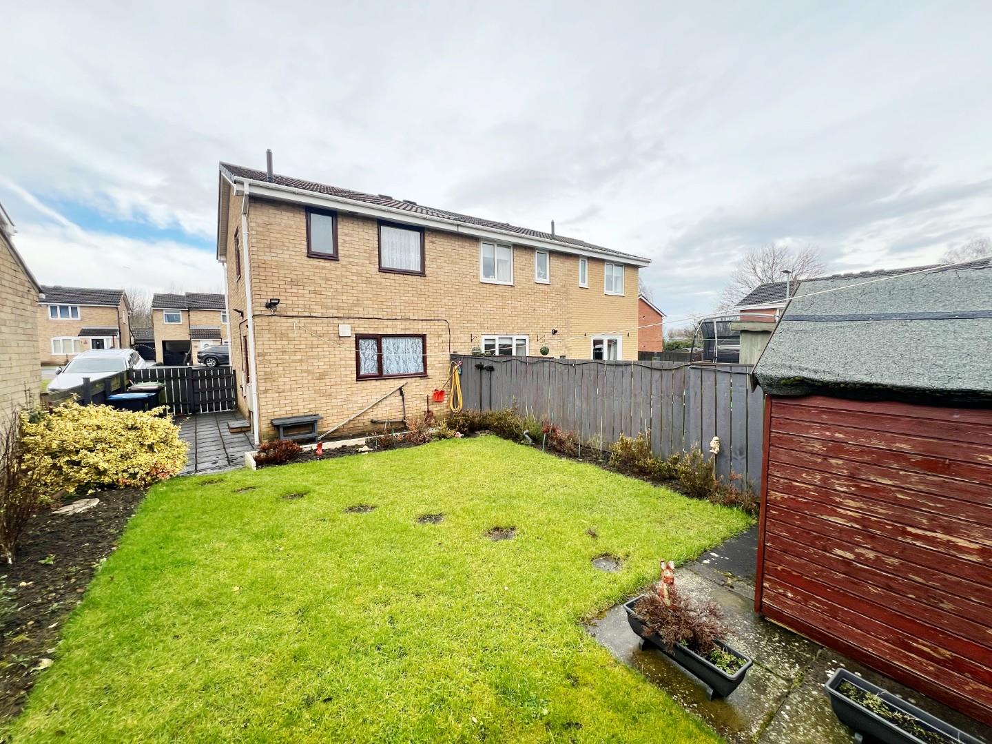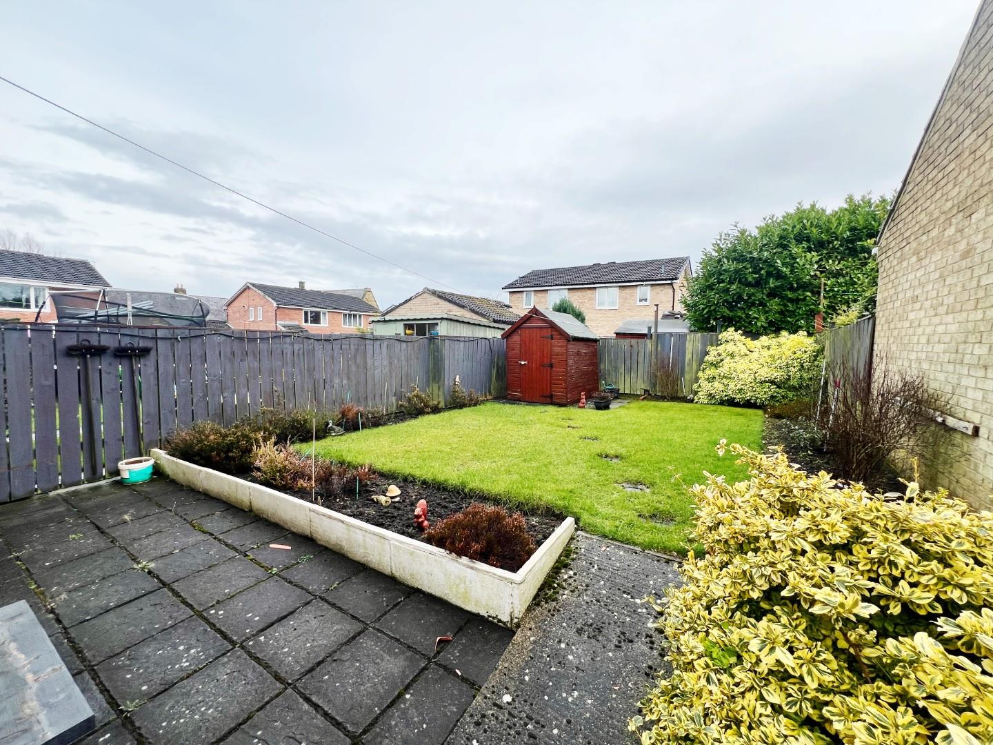 To the front elevation is an easy to maintain garden and driveway. While to the rear, there is a lovely, large enclosed garden with a useful shed which has power.