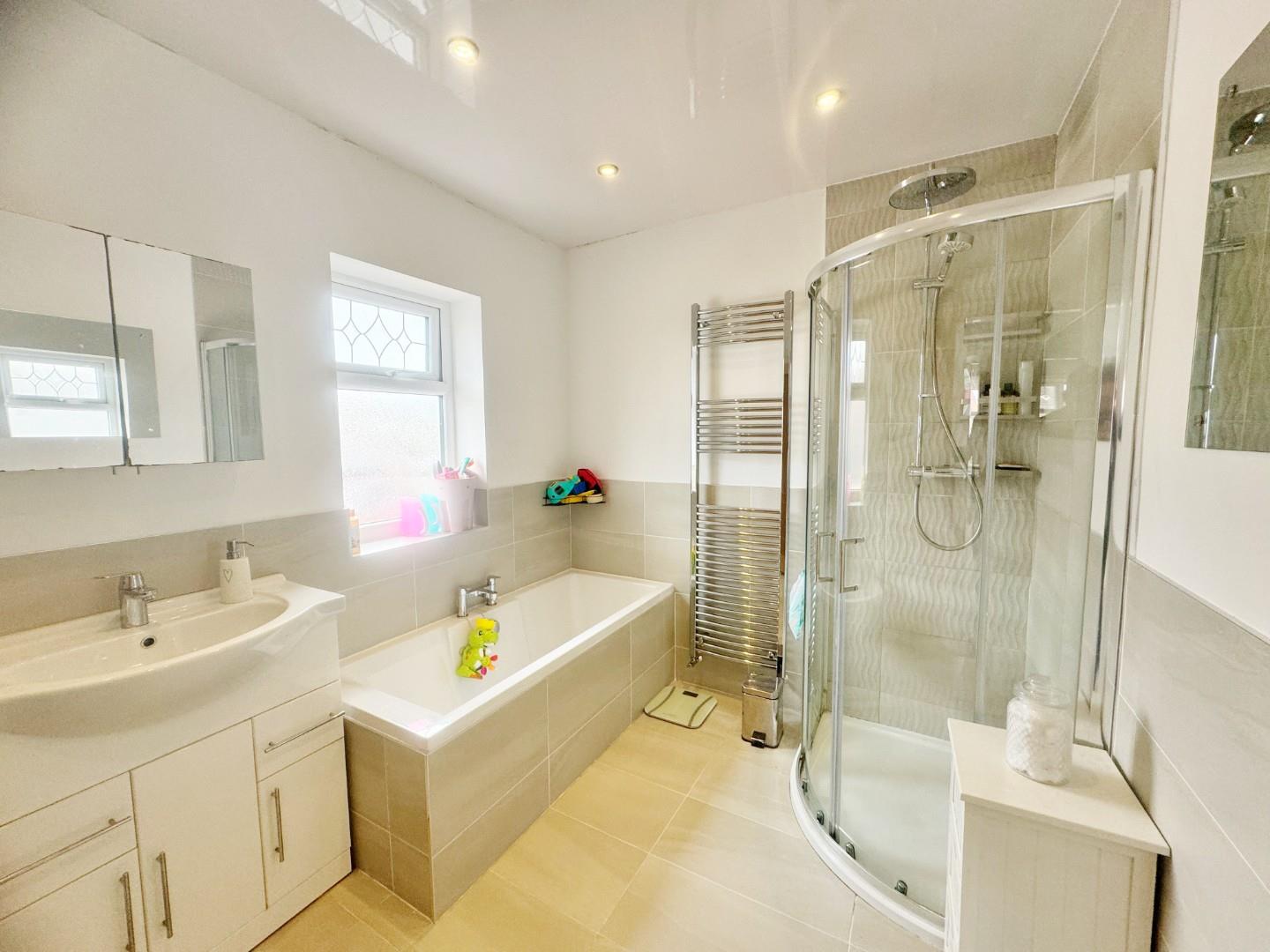 Refurbished to an exceptionally high standard, the property boasts triple glazing, gas central heating & briefly comprises: spacious entrance hall with access to a ground floor cloaks/wc, a lovely light lounge with original feature fireplace & walk-in bay window, a versatile family room which has the added bonus of an additional dining area with bi-fold doors that provide access to the rear garden & a spacious kitchen which is 16ft in length. To the first floor, there are three double bedrooms & a stunning bathroom with panelled bath & separate shower cubicle. The first floor landing itself also provides stair access to a (17ft approx) loft space. Externally, the property enjoys a good sized, enclosed garden to the rear/side whilst the front elevation provides a driveway with parking for up to two vehicles & access to a single garage.