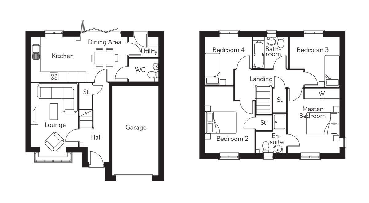 The Laurel is a four bedroom detached home which is ideal for the family. The entrance hallway has stairs to the first floor, spacious lounge with bay window to front elevation, large open-plan kitchen/dining area with a range of fitted wall & base units & bi-fold doors to the rear garden, utility room & ground floor cloaks/wc. The first floor landing boasts master bedroom with en-suite facilities & fitted wardrobes, three further bedrooms, family bathroom & storage.