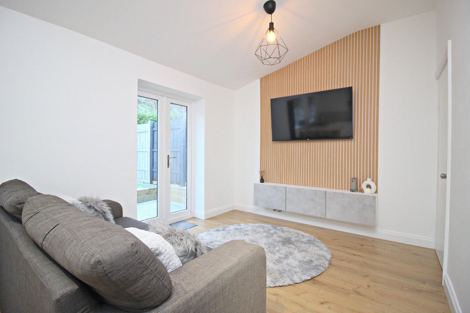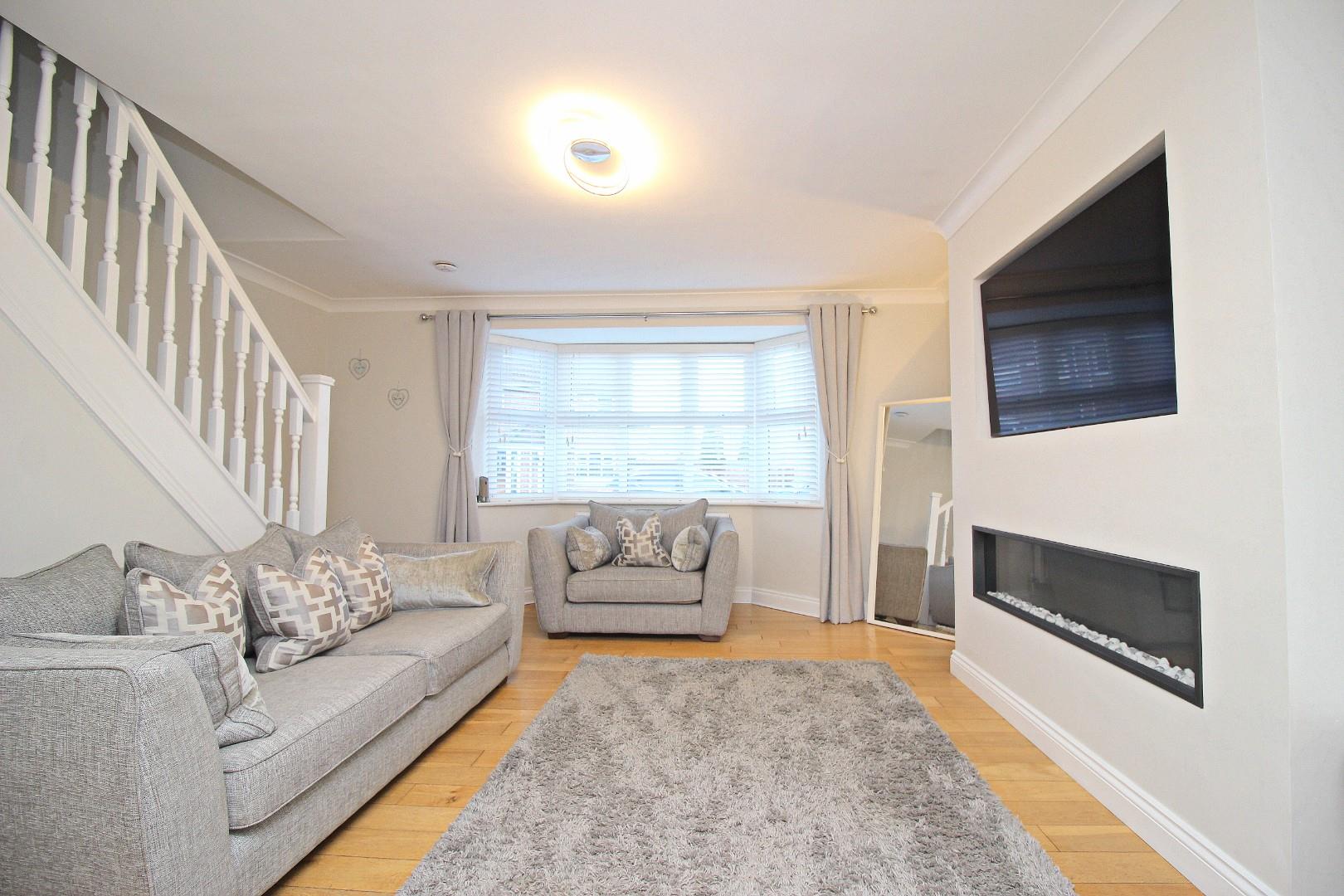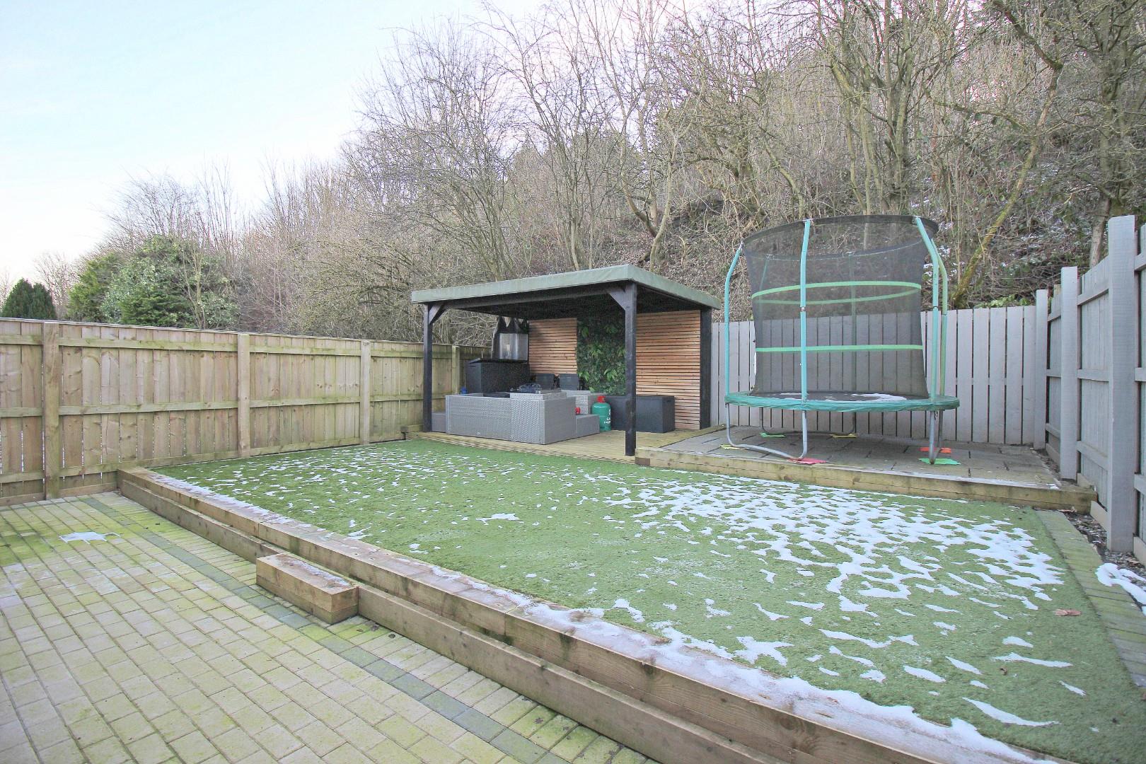 Externally, the property includes a low-maintenance front garden and off-road parking for two vehicles. To the rear is a beautifully landscaped garden designed for both relaxation and entertainment. Featuring a raised artificial lawn for low-maintenance upkeep, it also includes a stylish covered seating area, perfect for enjoying the outdoors in any weather. Adjacent to this is a paved patio, ideal for al fresco dining or gatherings. The space offers ample room for children’s play equipment or additional outdoor furniture, all set within a private, fenced boundary.