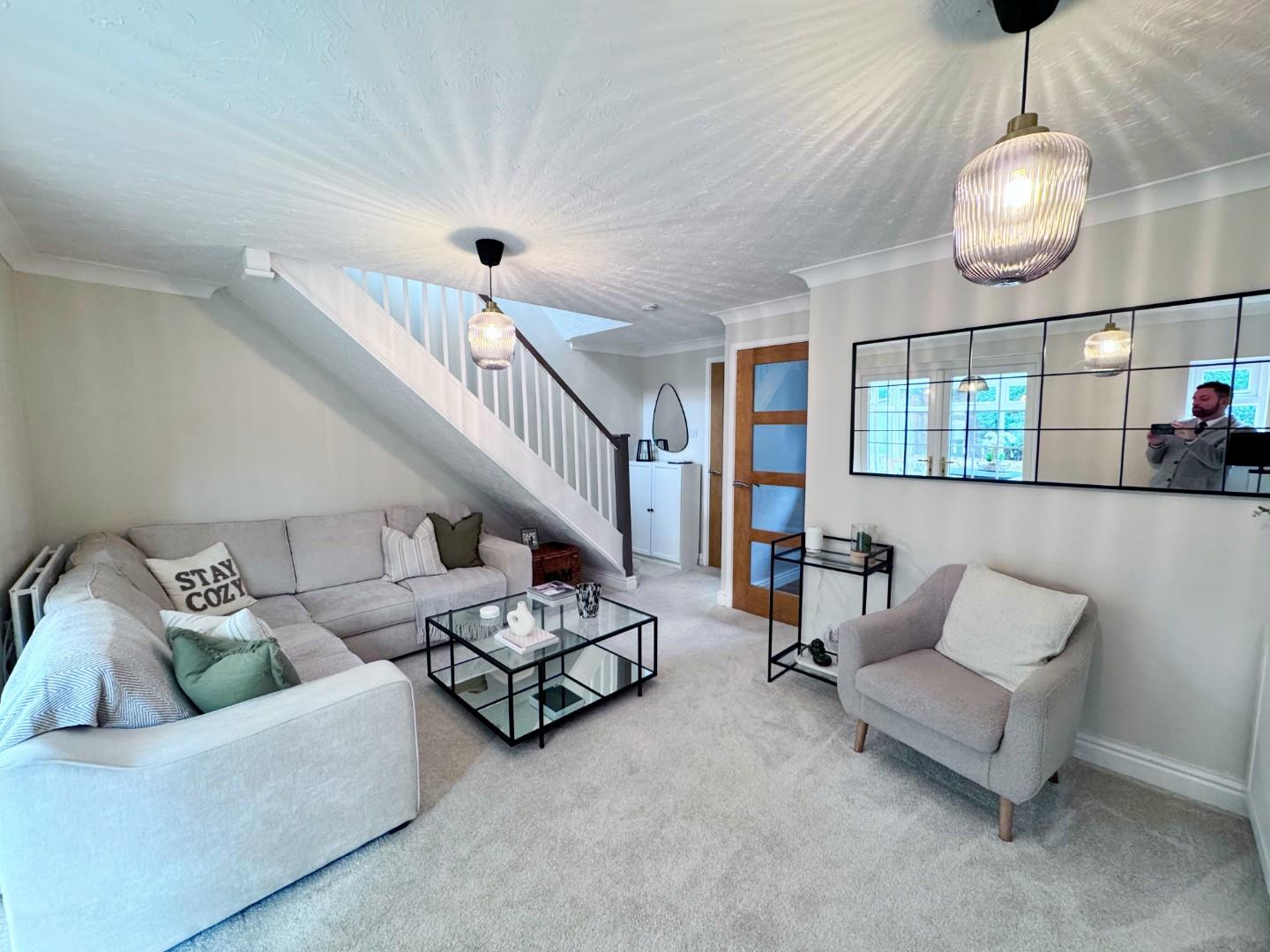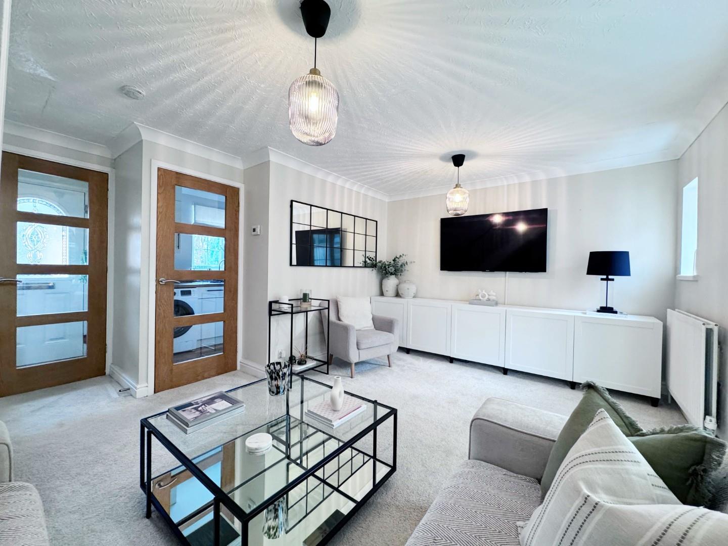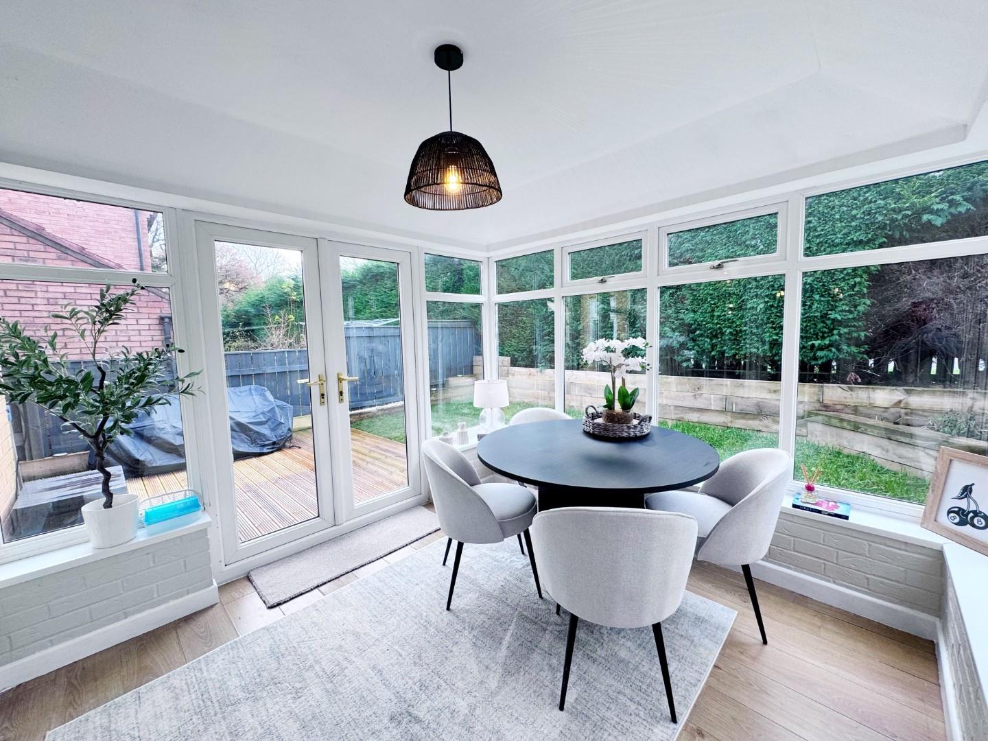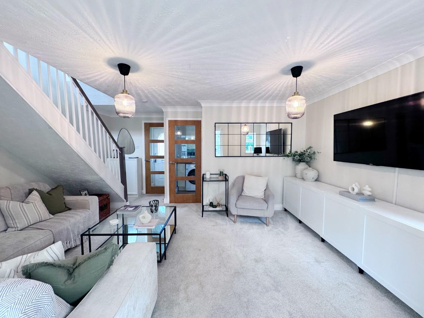 Double glazed french style doors leading to the spacious conservatory, two radiators, TV point, telephone point, coved ceiling, space for small table and chairs, stairs leading to first floor, quality flooring.