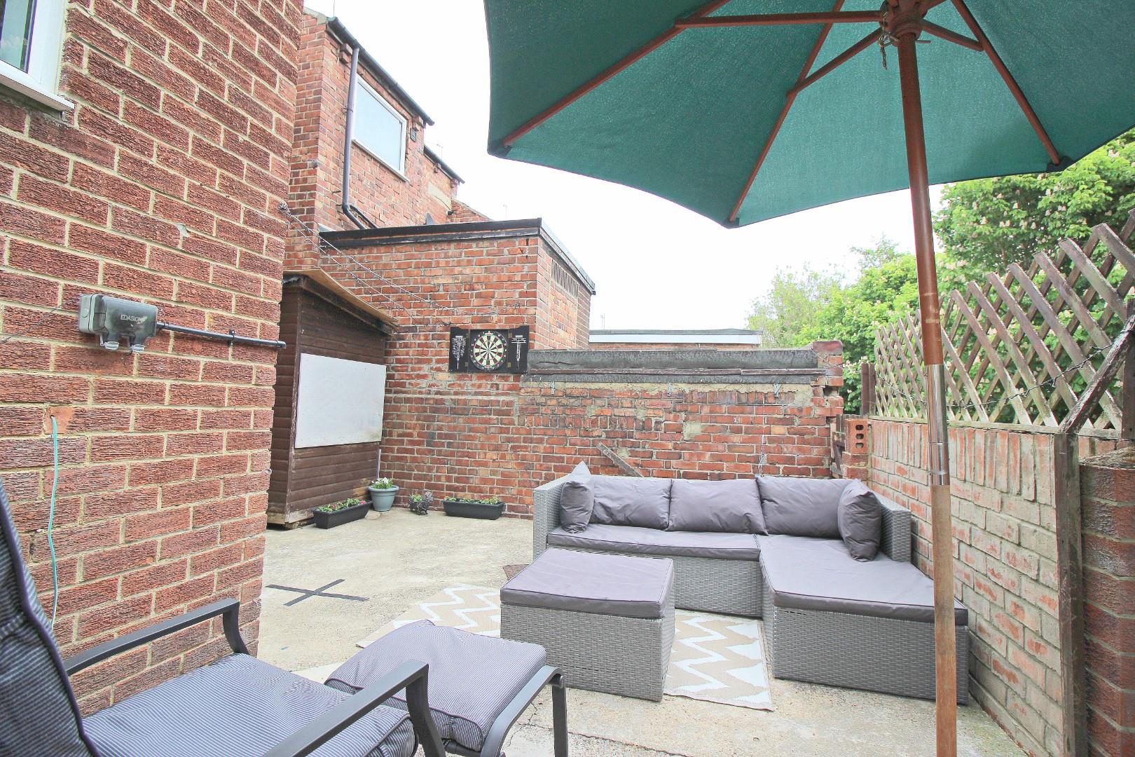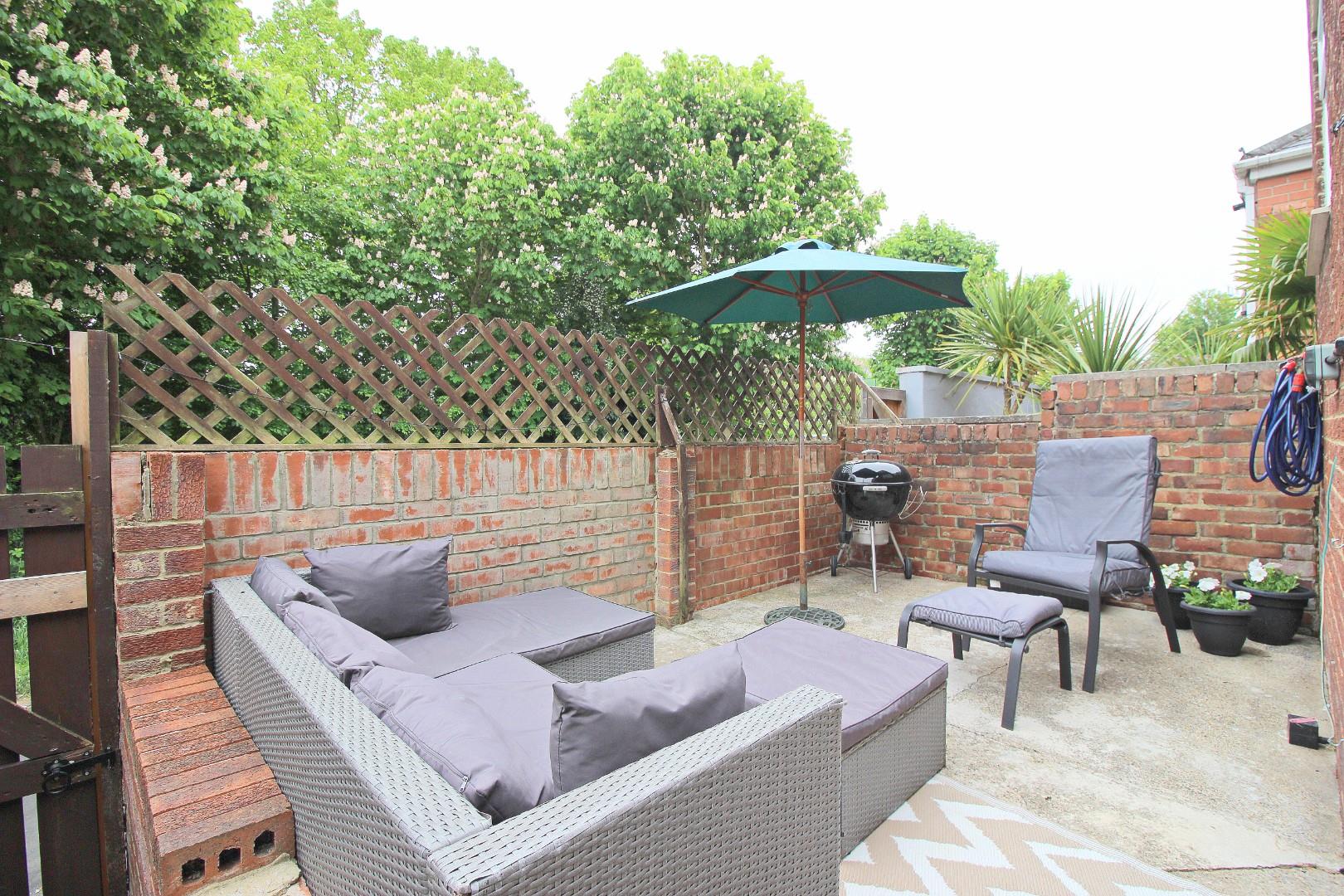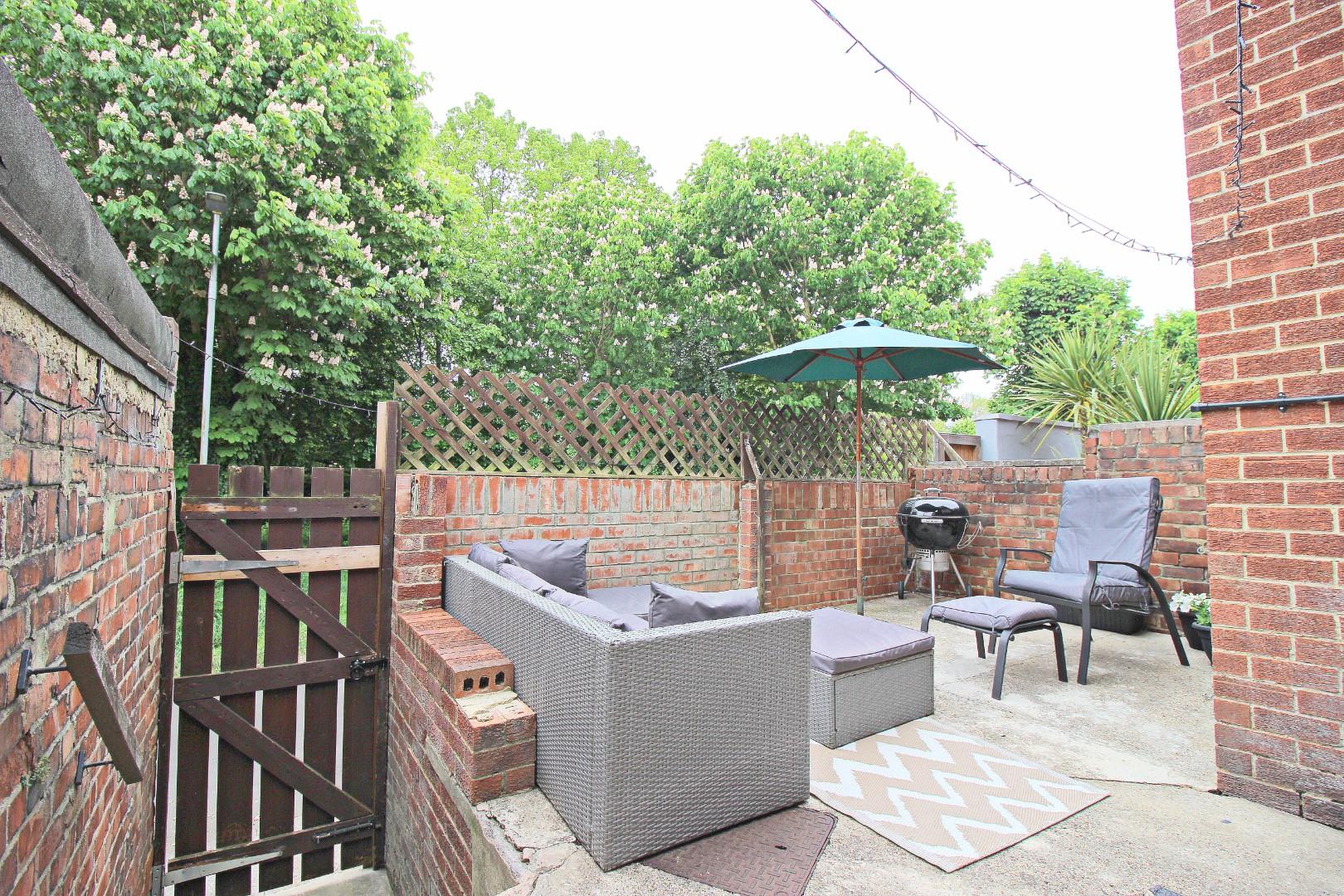 To the rear, you'll find a pleasant, enclosed yard with a seating area that enjoys a good degree of privacy. Just beyond the yard, there are ample non-allocated parking spaces.