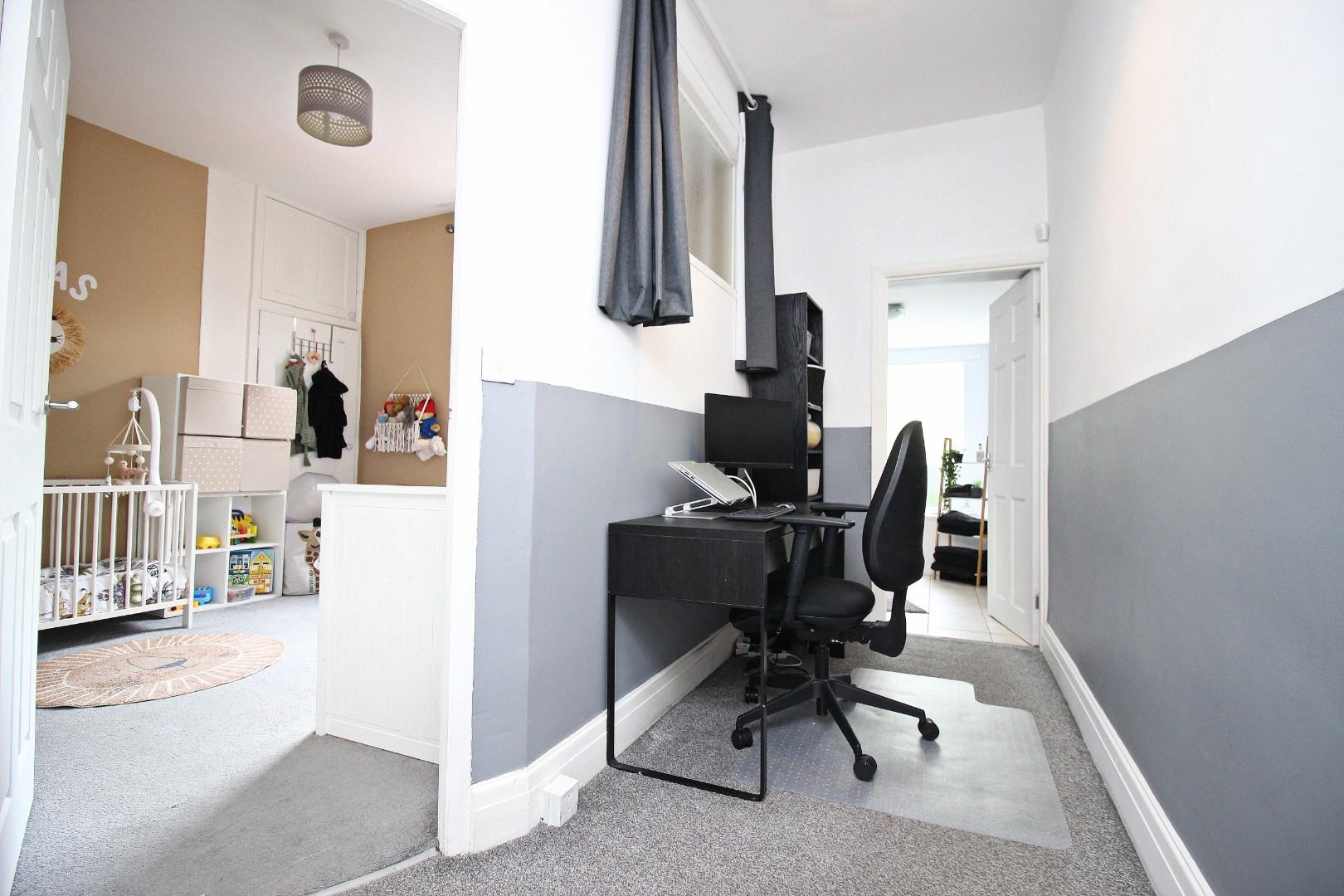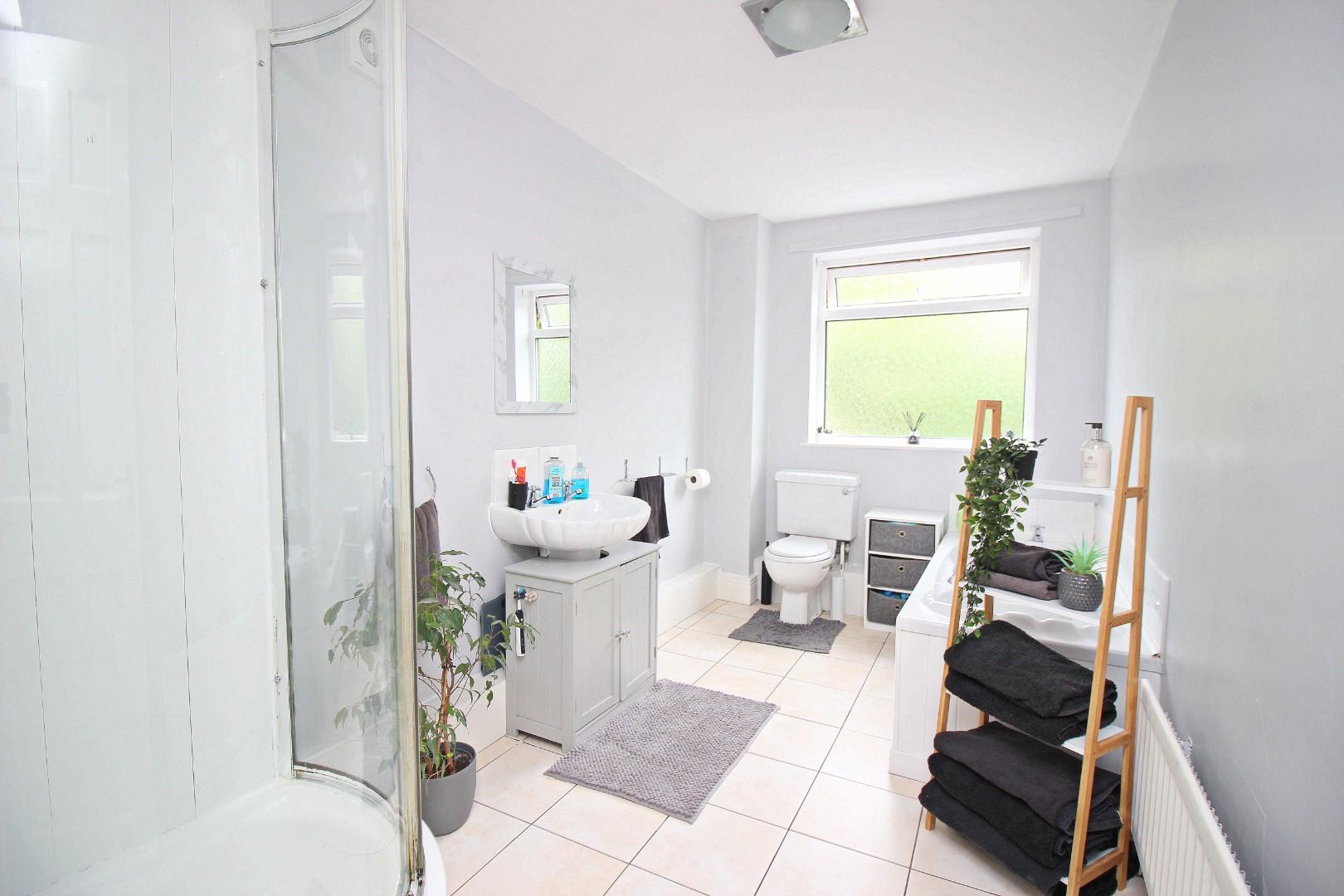 Upstairs, the landing benefits from natural light and is spacious enough to be used as a study area – a great option for those working from home. There are two large double bedrooms and a generous bathroom which includes a white suite and a separate shower cubicle.