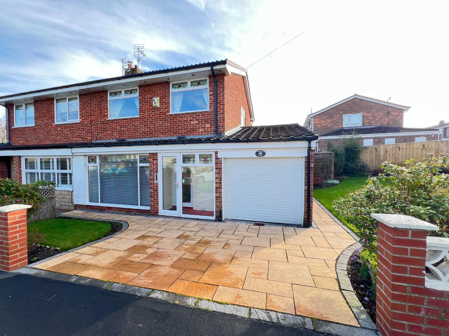 In brief the accommodation on offer comprises: Entrance Hall, Lounge, Dining Room, Kitchen and Utility to the ground floor whilst to the first floor there are two double and one single bedroom, )the master bedroom and bedroom two having fitted robes and bedroom three a storage cupboard), bathroom and separate WC. Externally the property sits on large corner plot with lawned gardens to the front, side and rear and with rear paved patio and greenhouse. A double driveway to the front allows parking for 2 cars and leads to an attached single garage.