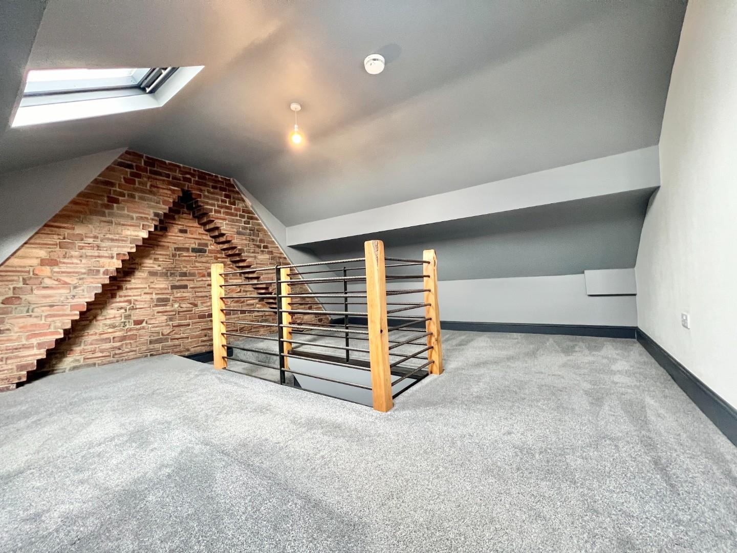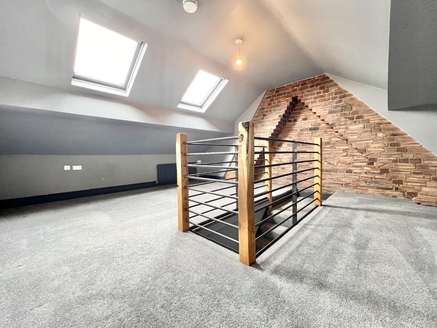 A further staircase from the landing leads to the attic conversion which has two 'Velux' style windows and feature exposed rustic brick wall.
