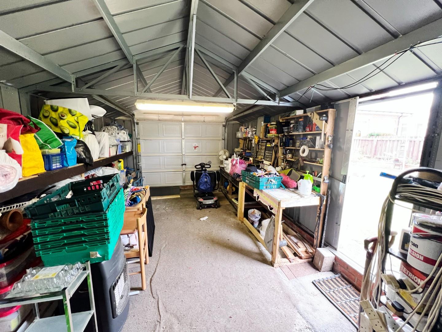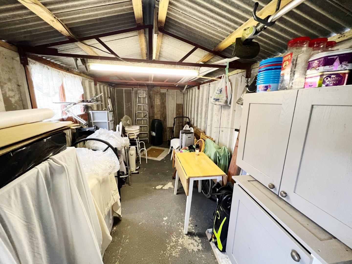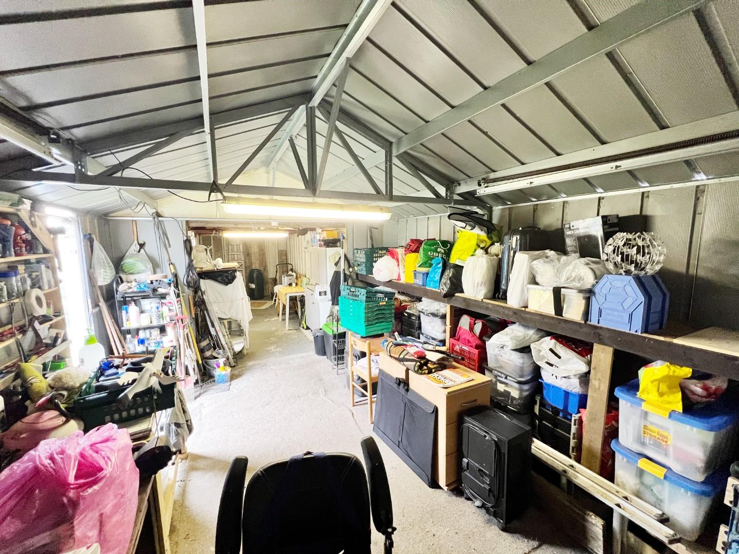 Currently used as a workshop and storage. Power and lighting.