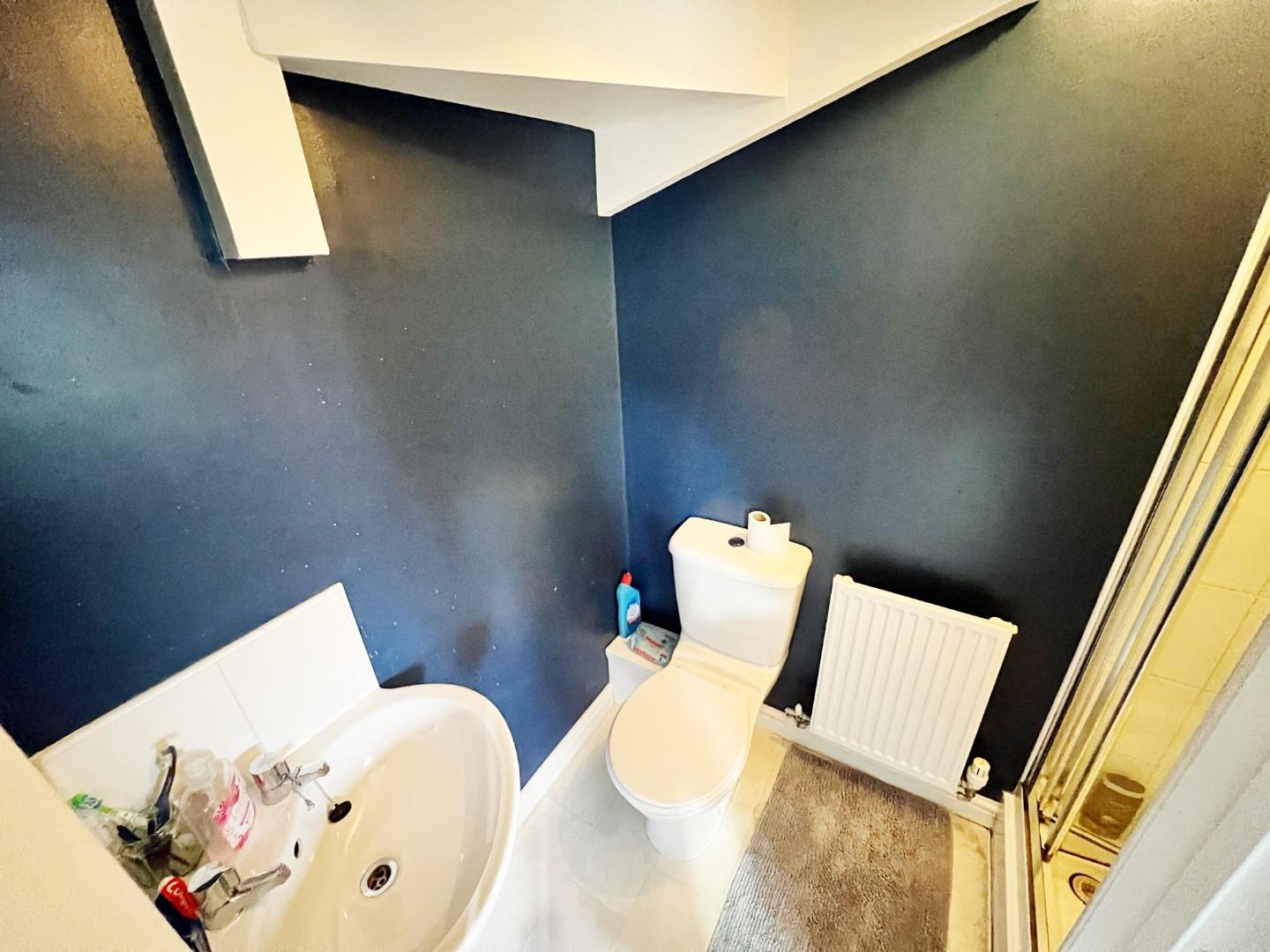 W/C, wash hand basin, radiator, extractor fan.