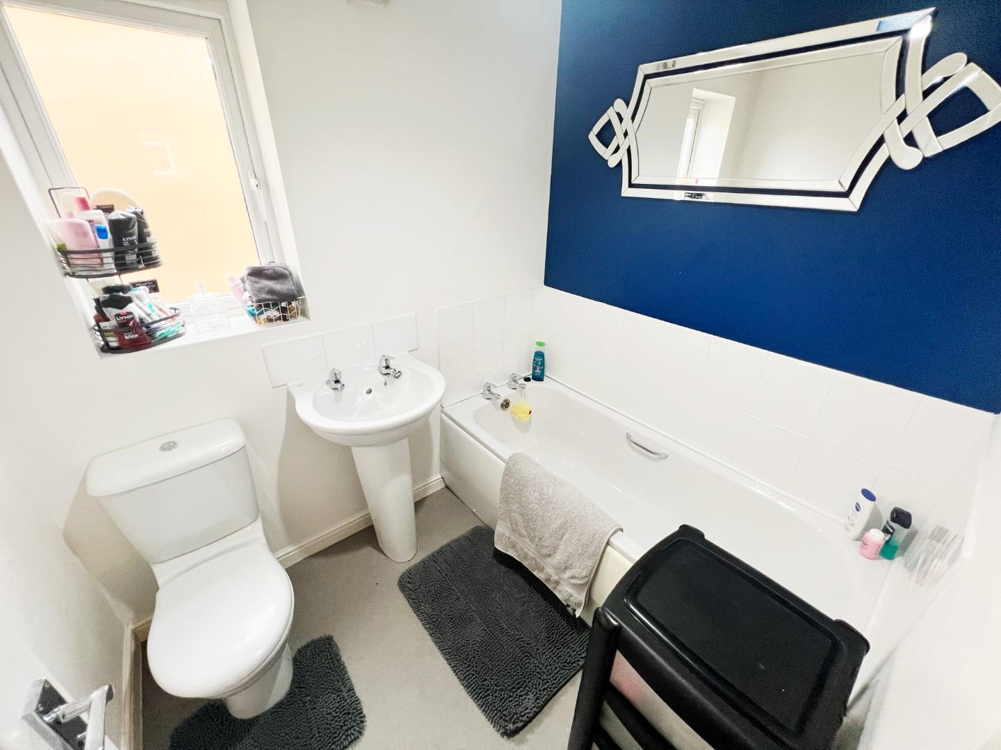 Panelled bath, wash hand basin, W/C, tiled splash backs, uPVC window, extractor fan, radiator.