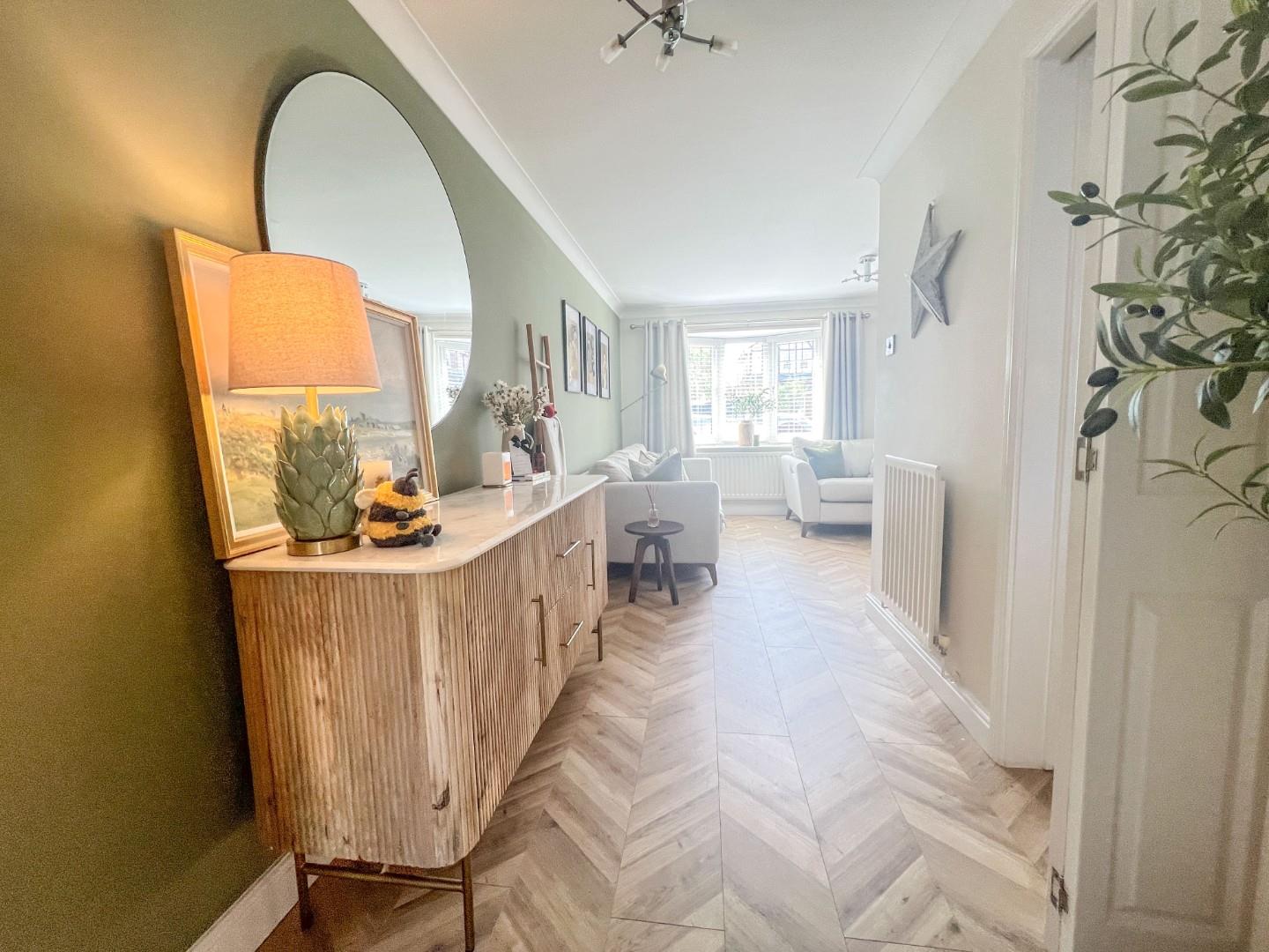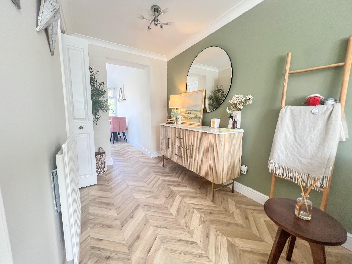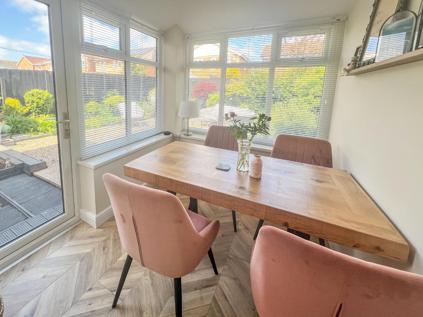 The property comprises an entrance porch, comfortable lounge/dining room, modern fitted kitchen, lovely garden room and downstairs WC. The first floor has two bedrooms and bathroom/WC. Outside, there is front driveway parking leading to the single garage. The rear garden is enclosed with door to the garage.