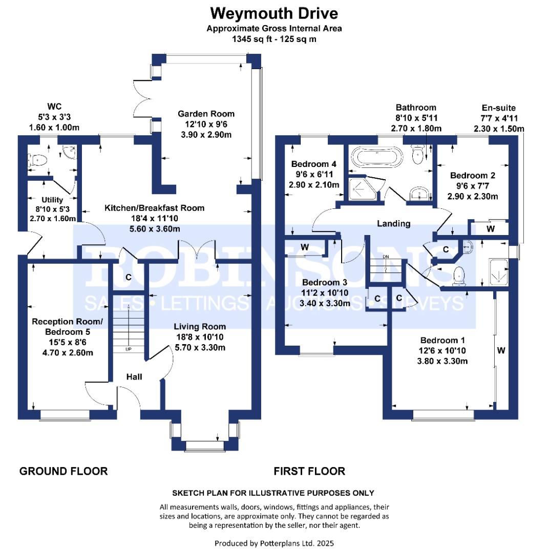 Additional ground floor accommodation includes a utility room, a modern downstairs WC, and a versatile fifth bedroom, thoughtfully converted from the garage, currently utilised as an extra reception area.