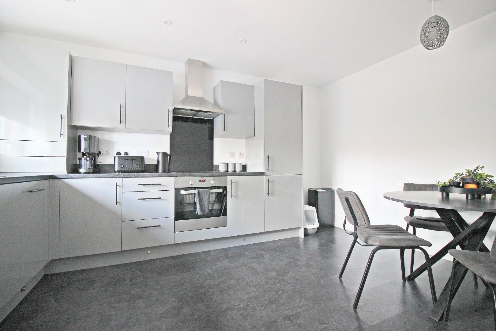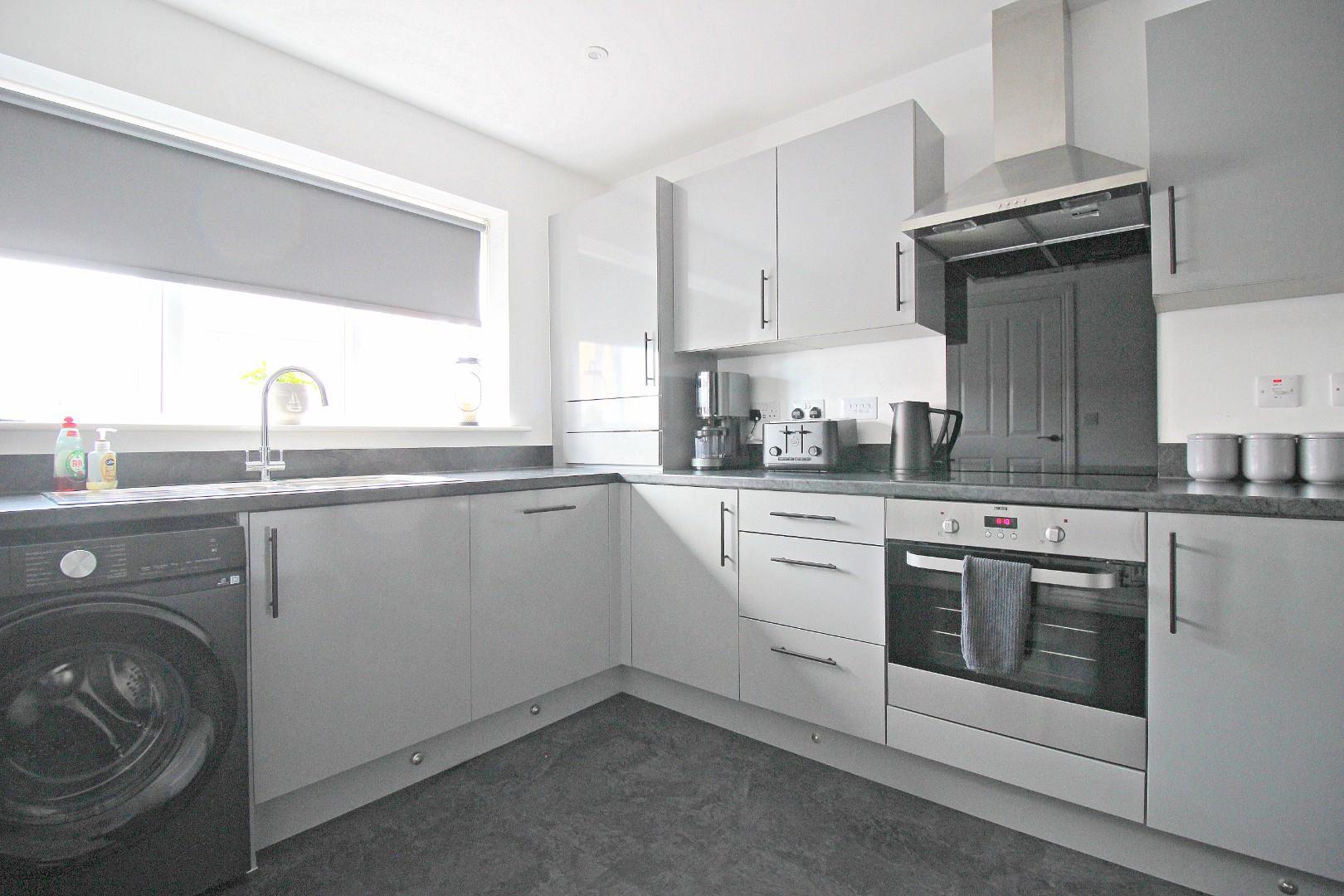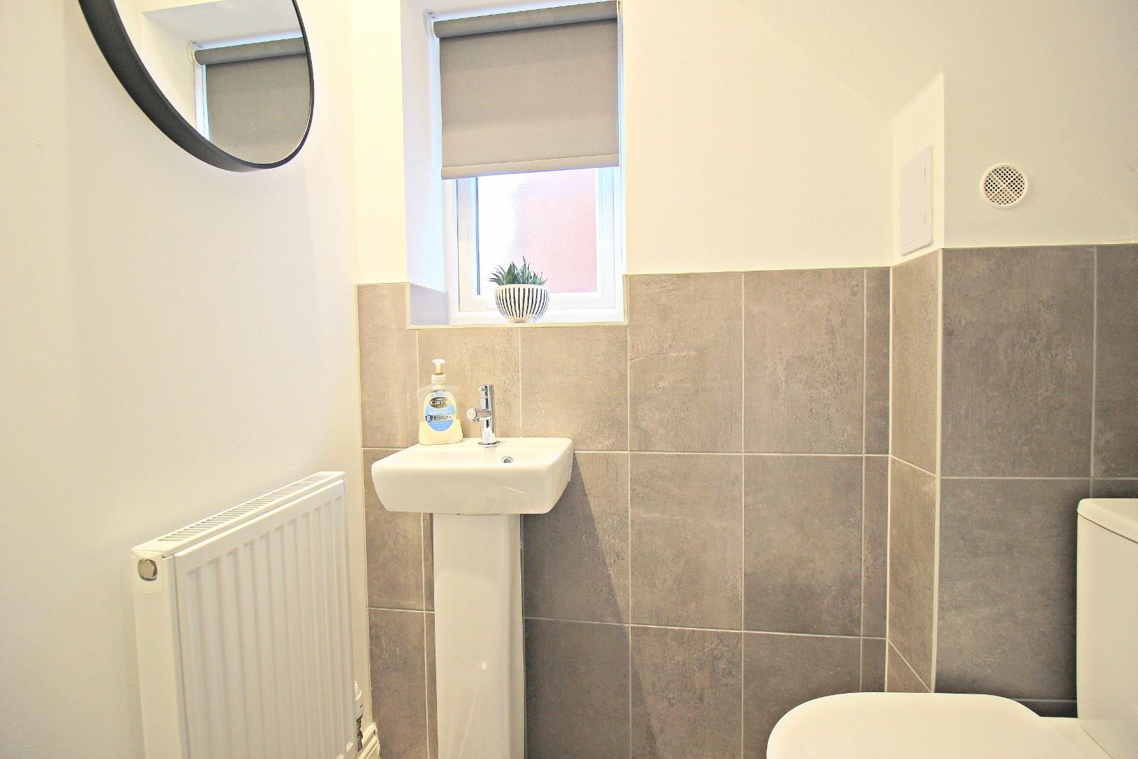 Inside, you’re welcomed by a bright entrance hallway with a handy downstairs WC, leading into a full-width lounge filled with natural light and featuring French doors that open out onto the rear garden. The modern kitchen diner is both sleek and practical, with integrated appliances, ample dining space, and high-quality wall and base units that add a touch of class.