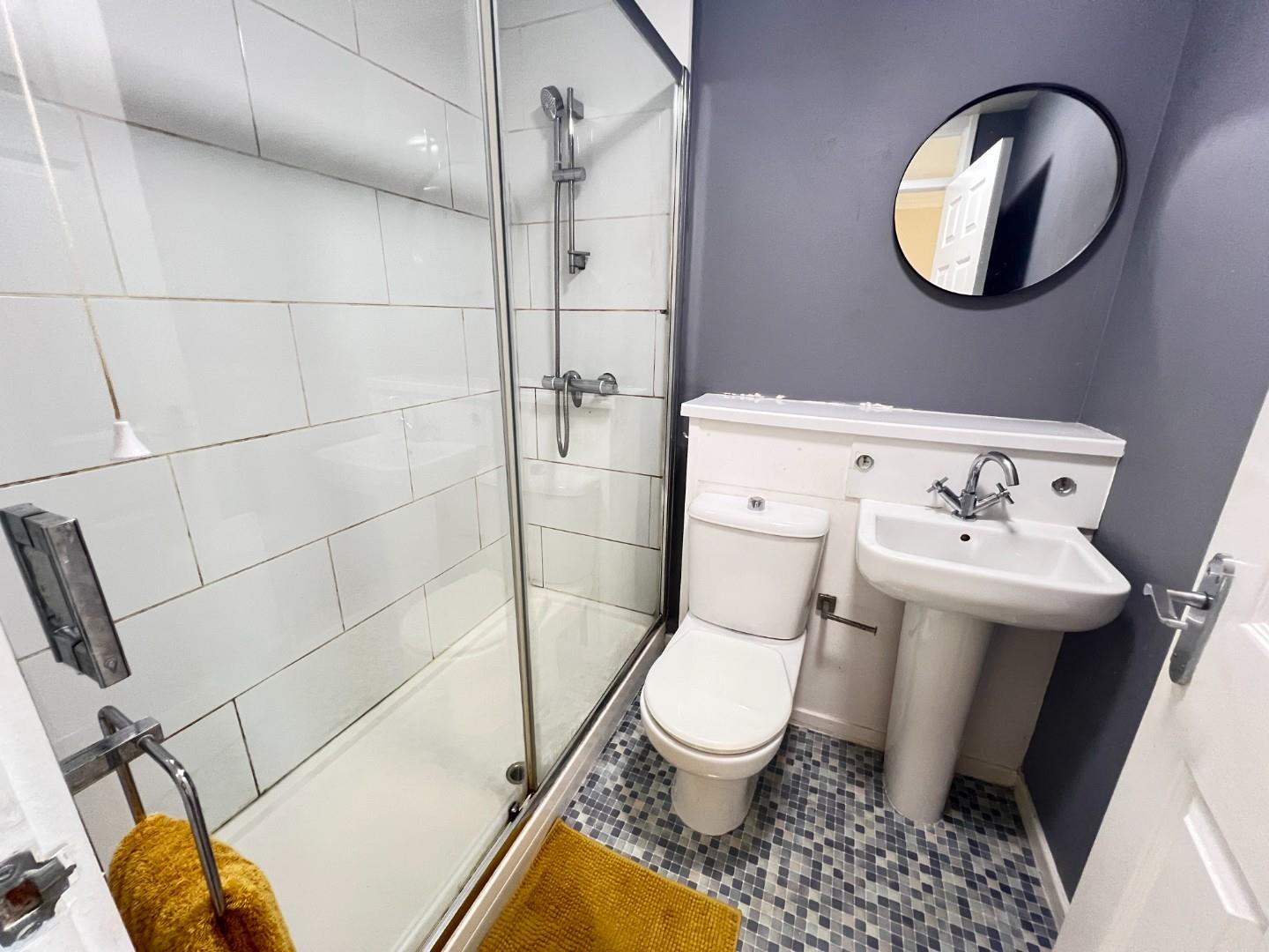 Fitted with a modern three-piece suite comprising Double shower cubicle with mains fed shower, pedestal wash basin, low level WC, tiled slash backs, extractor fan and opaque uPVC double glazed window.